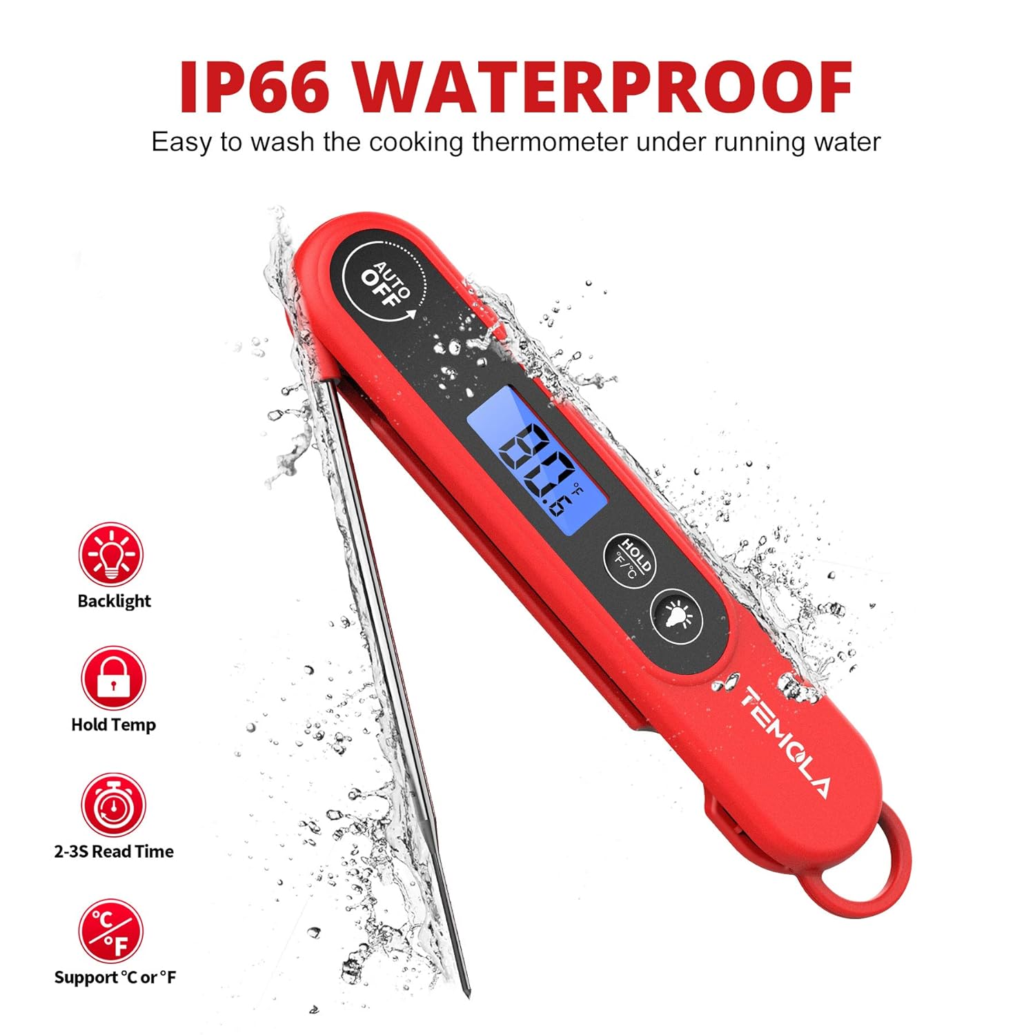 - 【IP66 Waterproof】The kitchen thermometer is made of high-quality waterproof eco-friendly ABS plastic, that means it’s easy to wash the cooking thermometer under running water.