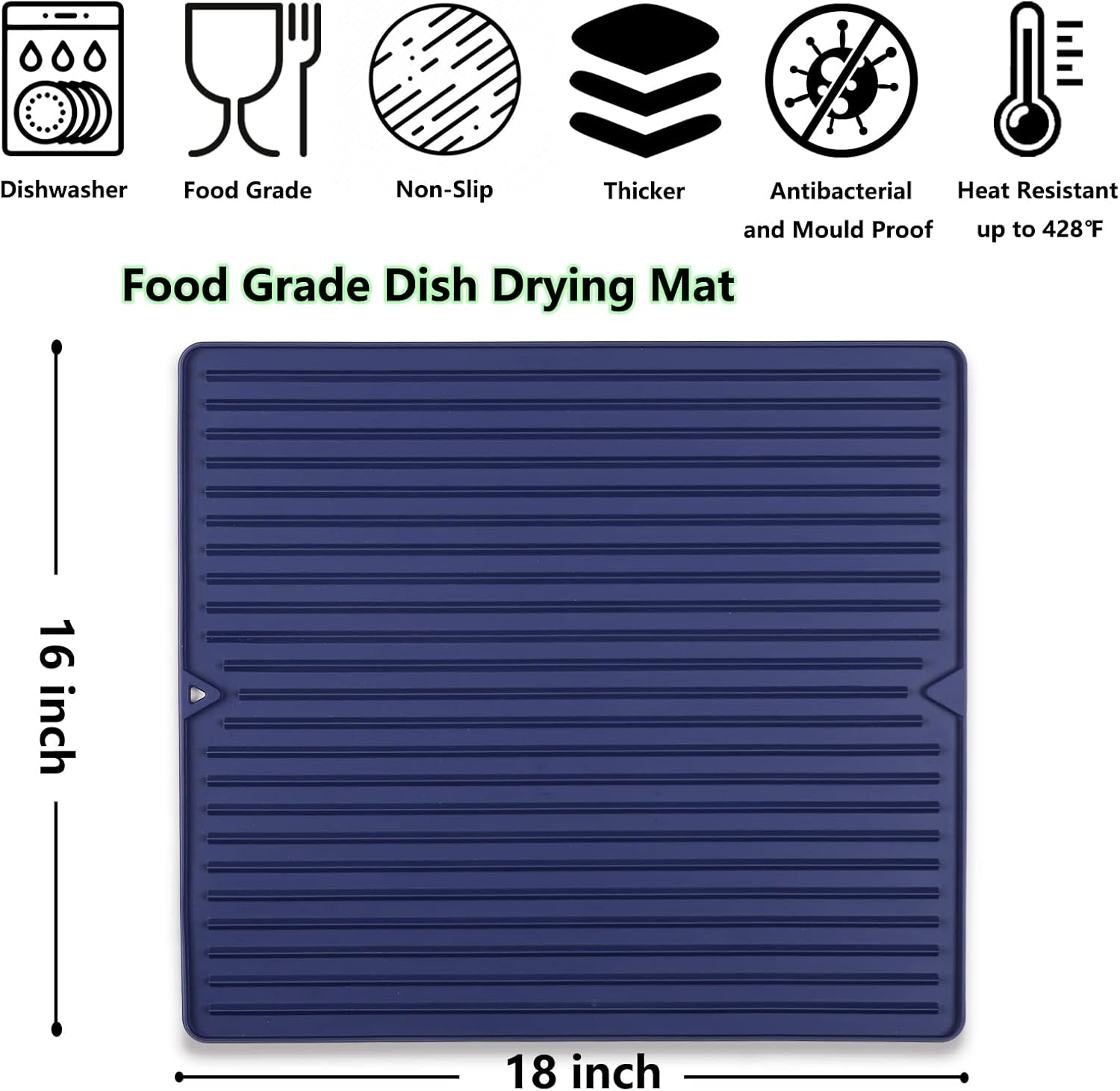 Dish Drying Mat, 16" x 18" Silicone Drying Mat for Kitchen Counter, Large & Thicker Silicone Dish Drying Pad with Raised Edges for Countertop, Multi-Purpose & Heat Resistant