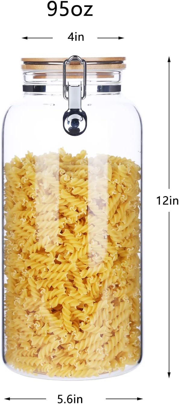 - 【Glass Sealed Container ofr Kitchen Pantry 】: The large glass jar is good for store flour,brown sugar,cookies,candy,pasta,rice,cereal,egg,coffee beans,nut or dog treats