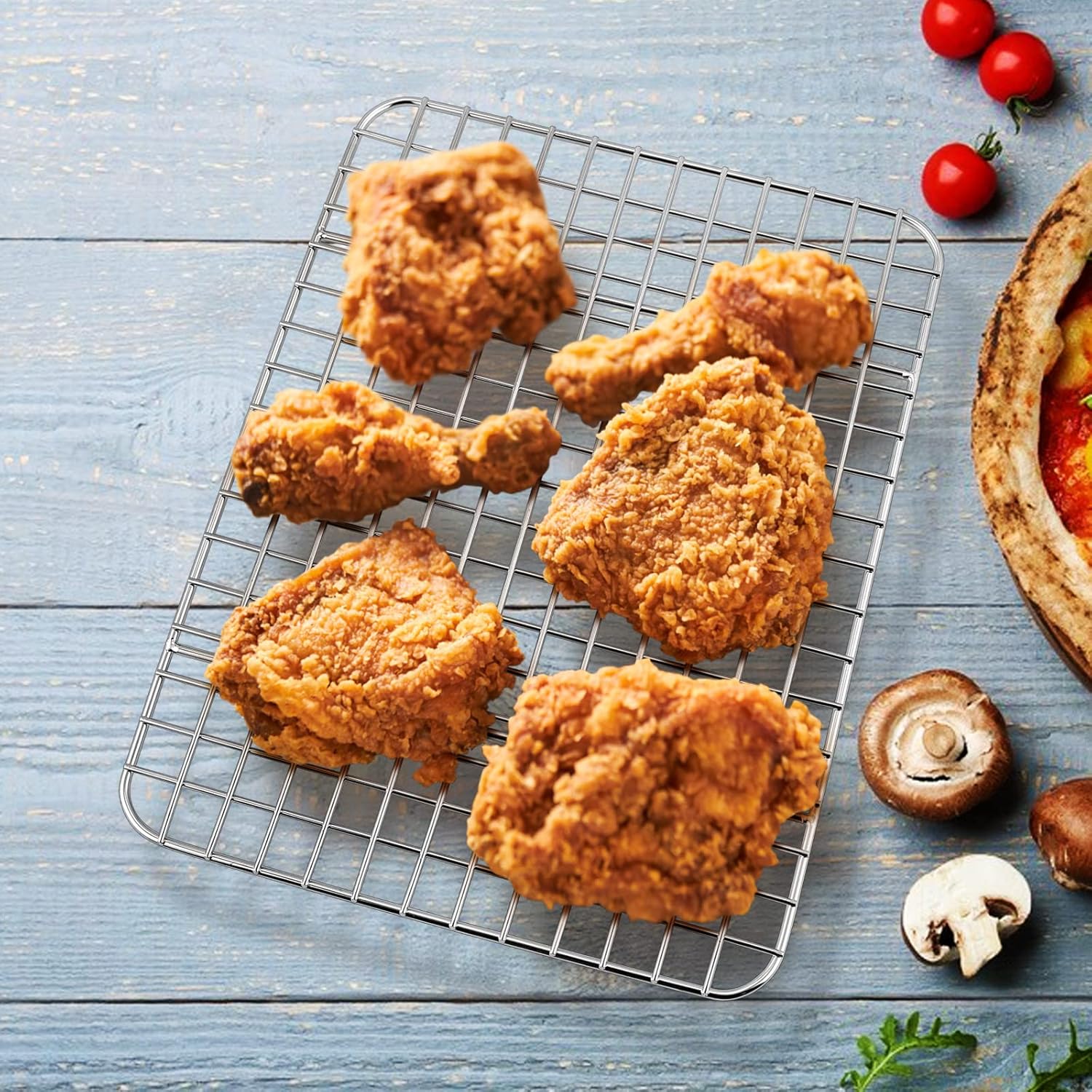 - VERSATILE - Two piece mini racks measures 8.6 inch x 6.2 inch, Make a great insert into a 9.4'' x 7.3'' baking sheet, Perfect for cooling and baking cookies, pizza, cakes and pies, grilling and smoking meats like bacon and chicken wings, roasting vegetables and fries, dripping grease and sauce off the food