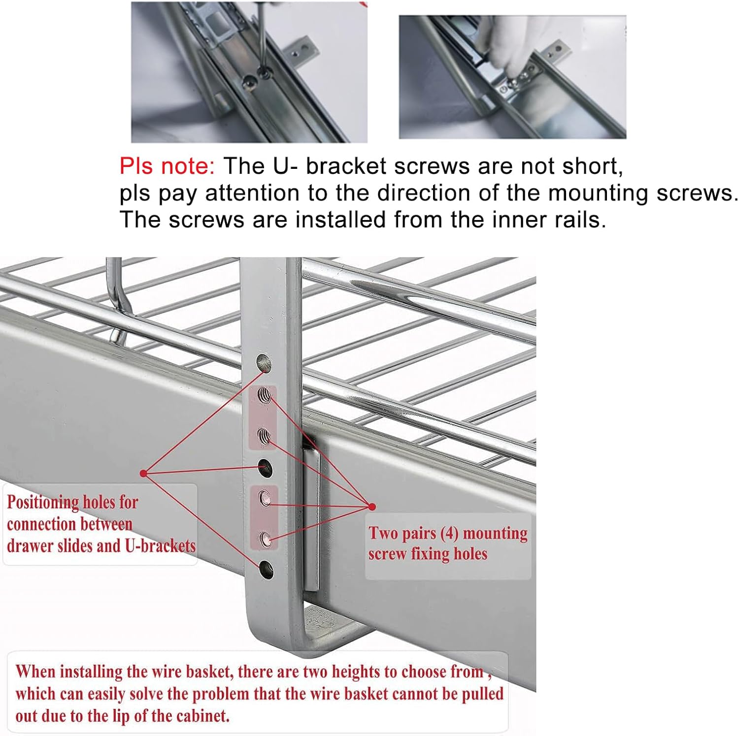 - ※ Excellent Design: The upper and lower wire baskets of this Cabinet Organizer has 2 height adjustment options, and the installation compatibility in the cabinet is better. When installing the lower wire basket, there are two heights to choose from, Which can easily solve the problem that the lower wire basket cannot be pulled out due to the lip of the cabinet.With a minimum height of 13.8 inches and a maximum height of 15 inches.