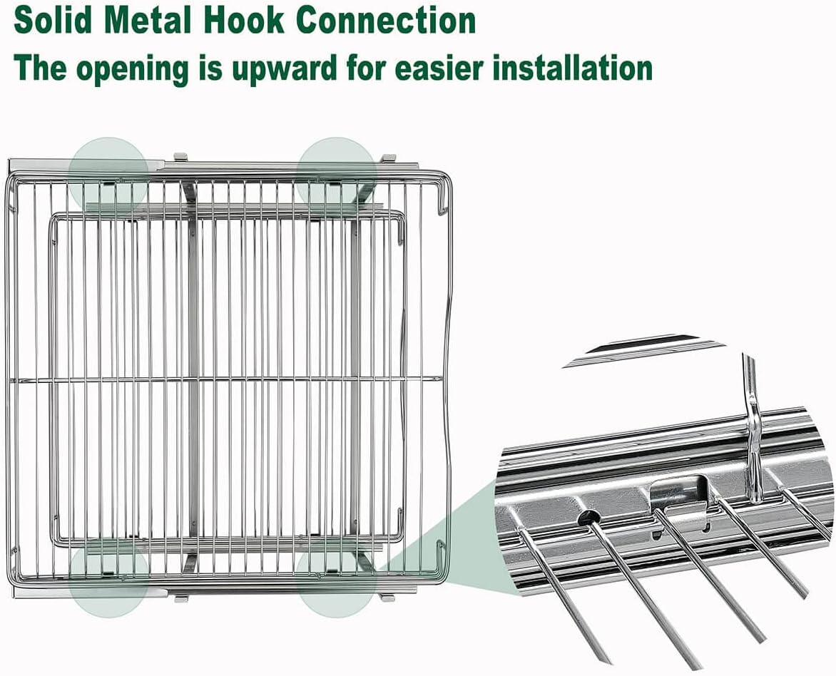 - ※ Excellent Design: The upper and lower wire baskets of this Cabinet Organizer has 2 height adjustment options, and the installation compatibility in the cabinet is better. When installing the lower wire basket, there are two heights to choose from, Which can easily solve the problem that the lower wire basket cannot be pulled out due to the lip of the cabinet.with a minimum height of 13.8 inches and a maximum height of 15 inches.