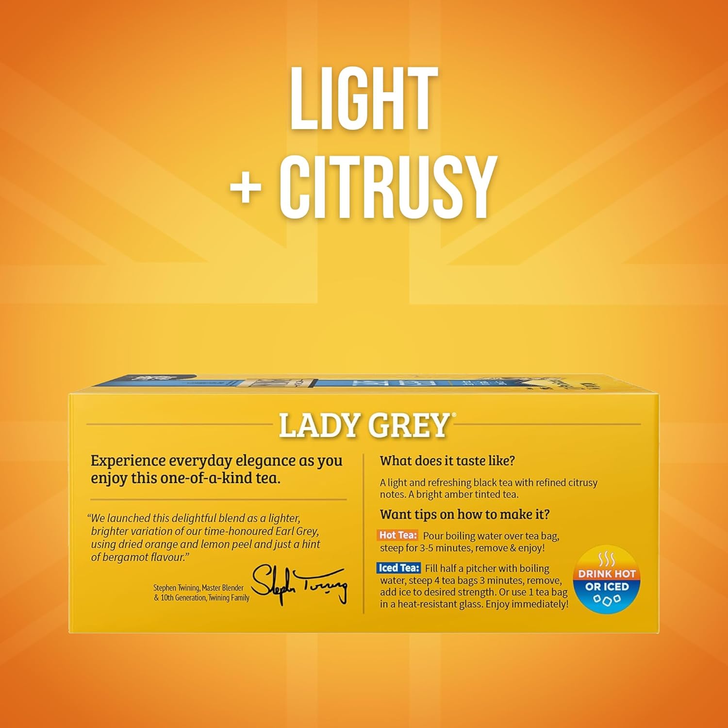 Twinings Lady Grey Black Tea Individually Wrapped Bags, 100 Count (Pack of 1), Orange Peel & Lemon Peel, Fresh and Uplifting, Caffeinated, Enjoy Hot or Iced, 100 Teabags