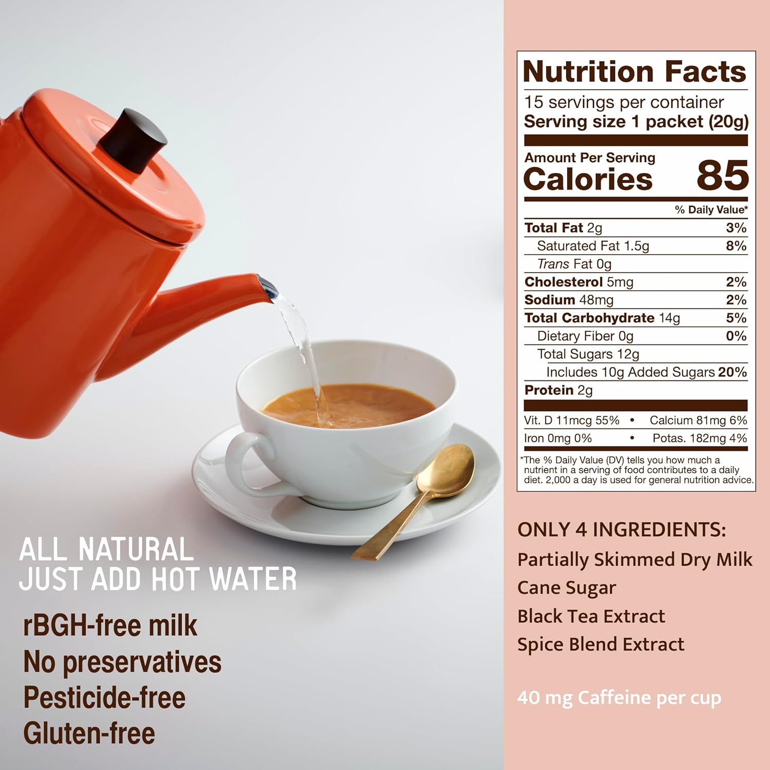 Jaipur Avenue Cardamom Chai Tea Mix Crafted with All-Natural Assam Black Tea, Cardamom, Cane Sugar, and Premium Dry Milk - Preservative-Free, Gluten-Free, Authentic Indian Chai Tea Latte (15 Servings)