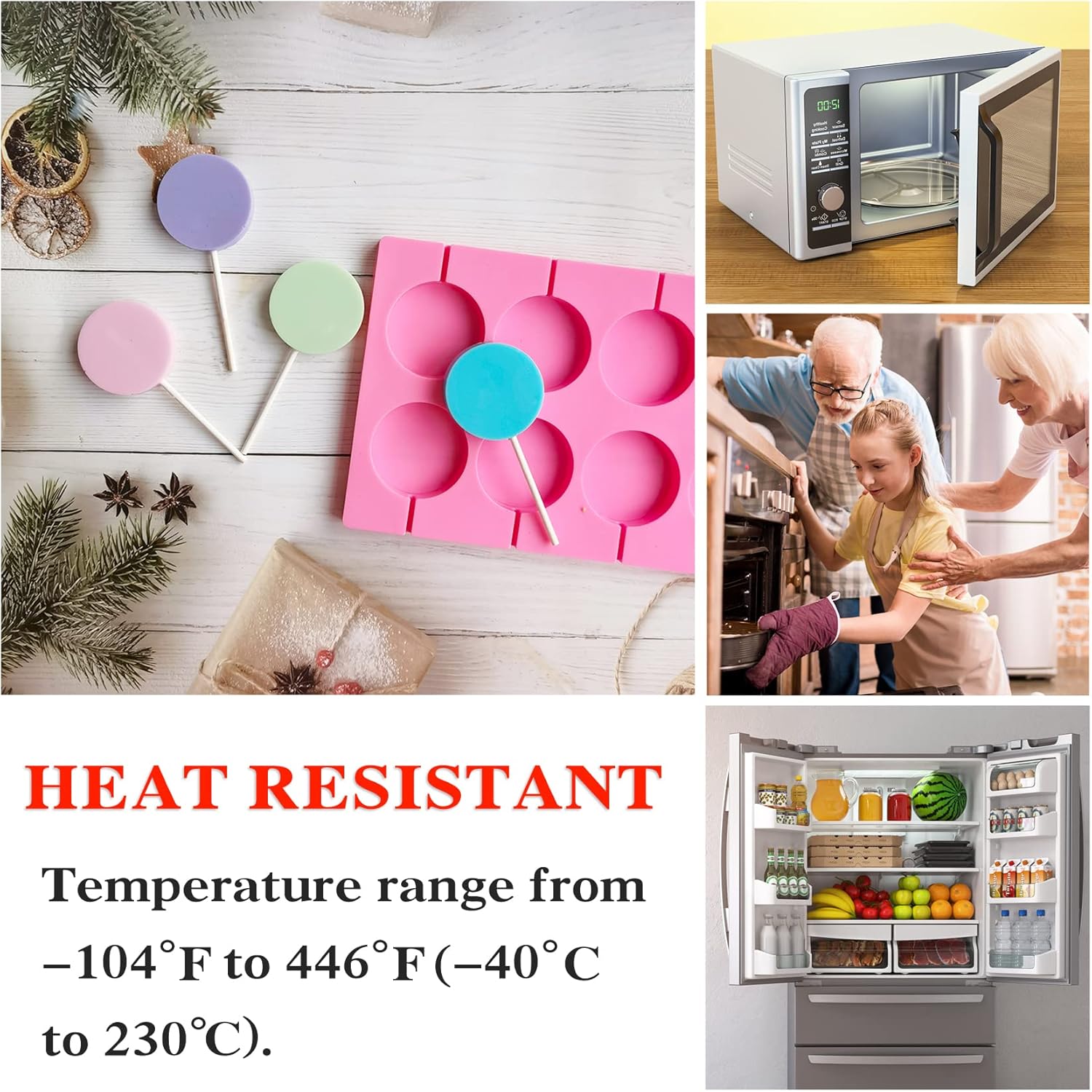 - 🍭【Safe and Heat Resistant】Lollipop Molds is made of safe food grade silicone hard candy silicone, which can be used with confidence. , Easy to form, suitable for microwave, refrigerator, dishwasher and oven.