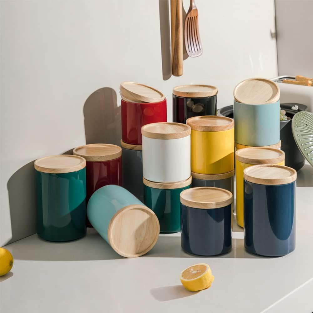 Sweejar Kitchen Canisters Ceramic Food Storage Jar, Stackable Containers with Airtight Seal Wooden Lid for Serving Ground Coffee, Tea, Sugar, Salt and More - 28 Fl Oz (Dark Turquoise)