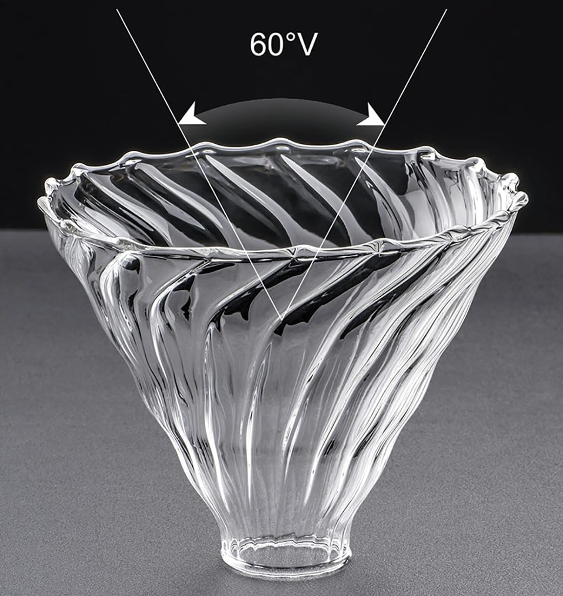 - 【V SHAPE GLASS COFFEE DRIPPER】The coffee filter is made of transparent glass and has a V shape to fully extract coffee. The inner wall has a spiral guide groove structure to make the coffee powder and the water flow fully contacted.