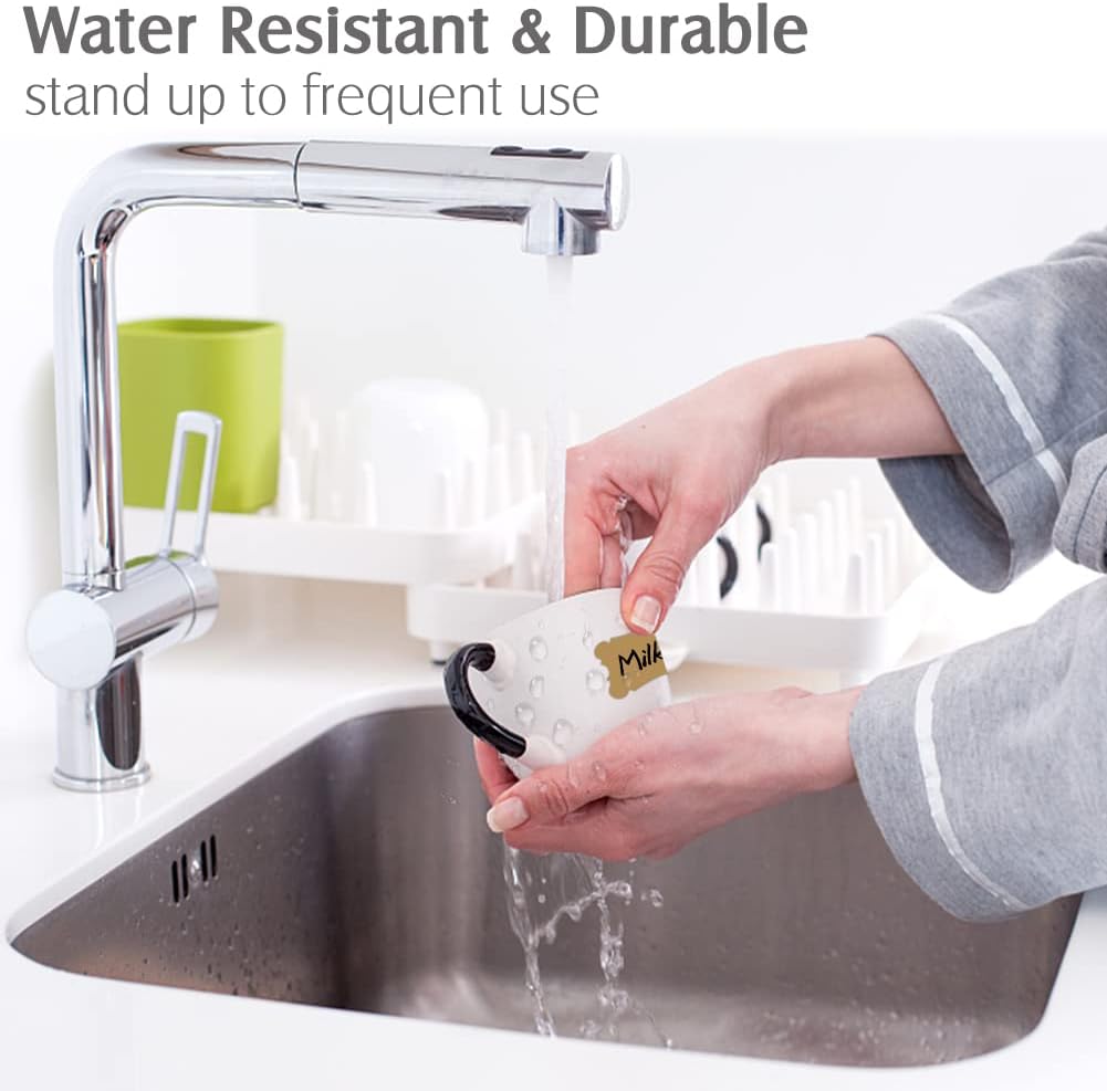 - Water & Oil Resistant: All our self-adhesive labels for jars are made of waterproof vinyl material and come with a permanent marker. Safe for dishwashers and refrigerators! Even the steam and moisture from the shower don't have to worry about them peeling off or disappearing!