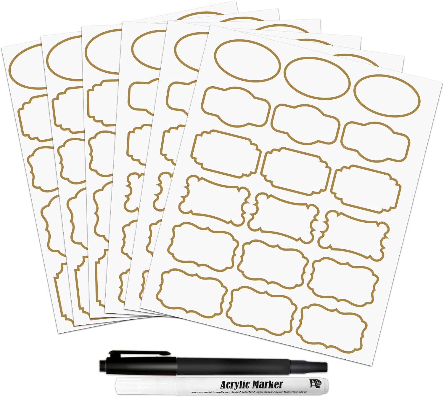- Color : Clear Labels With Gold Border(93 Pcs)