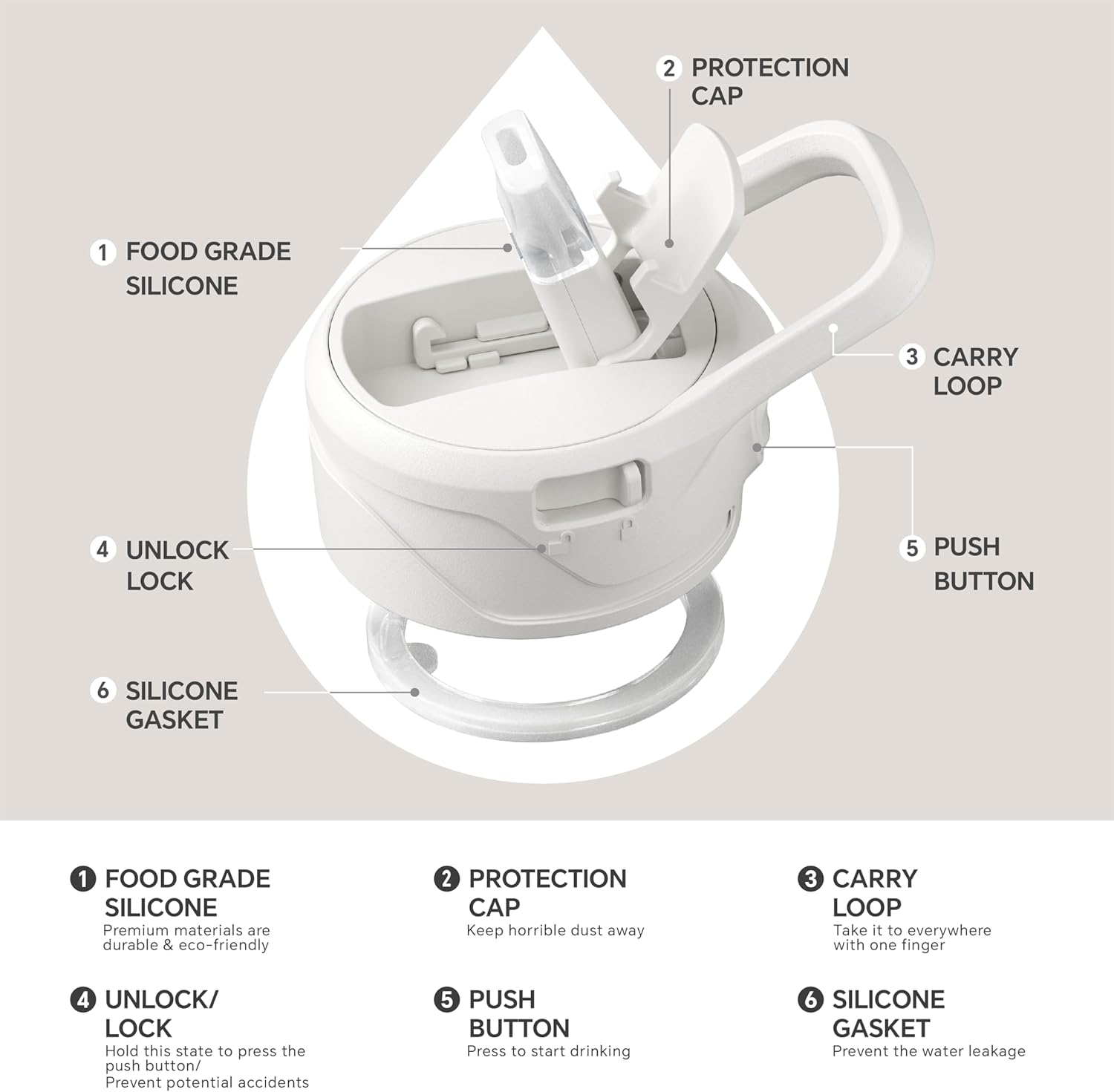 IDEUS Insulated Stainless Steel Water Bottle with 2 Leak-Proof Lids, Thermal Water Flask for Hiking Biking, 24oz, White
