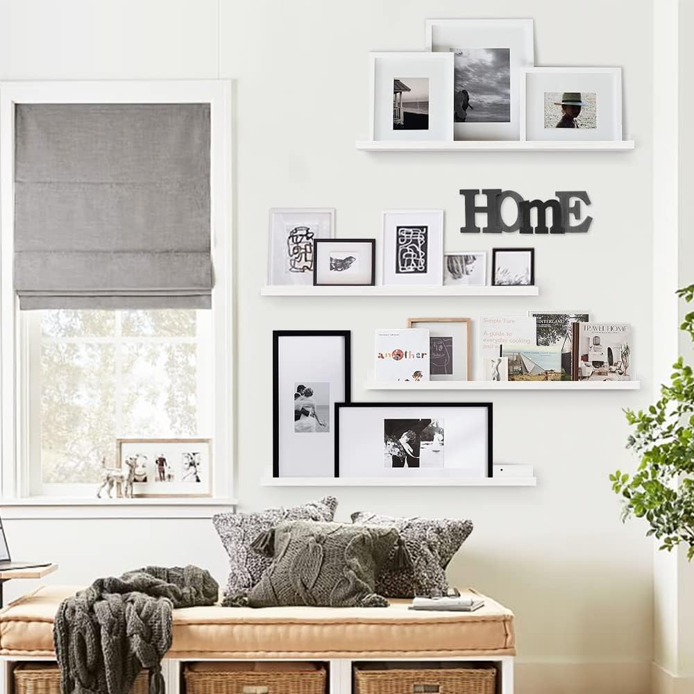 - 【Multiple combinations, More creativity】 You can connect two or more picture Ledge shelves together to hang them in a line all as 72 or 108 Inches long to display picture frames, picture books, legos, collectibles and art decor in your kids nursery. They can also be hanged as vertical model as wall shelving unit rack and hold photo frames, family pictures, small plants, canvas, knick knacks, pop figurines, mugs collectibles and vinyl records form your gallery wall in your living room, bedroom, family room or hallway.