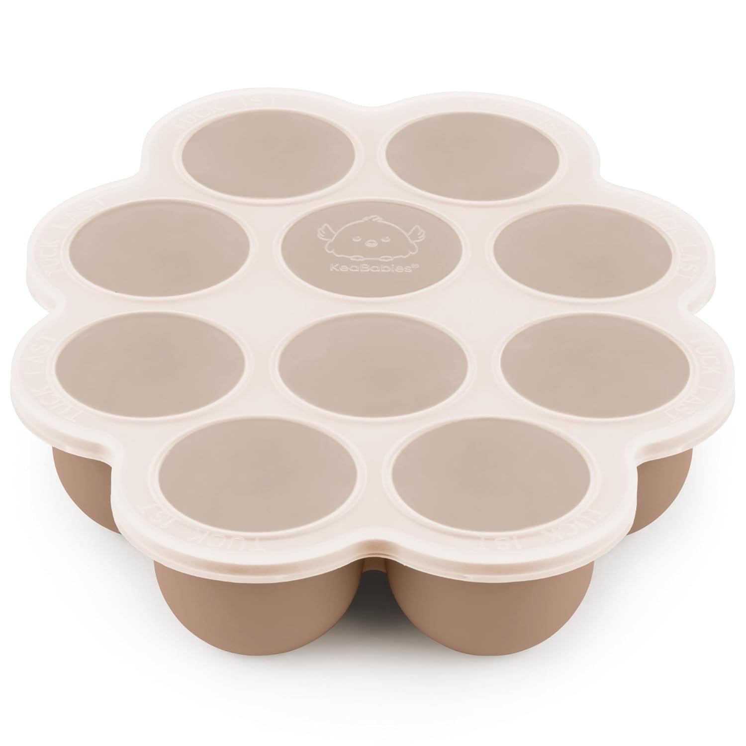 KeaBabies Silicone Food Freezer Trays with Lid, 2oz x 10 Pods Baby Food Storage Containers, Easy Puree Meal Prep, Breast Milk Silicone Freezer Molds, Dishwasher, Microwave Safe,BPA-Free(Chai Latte)