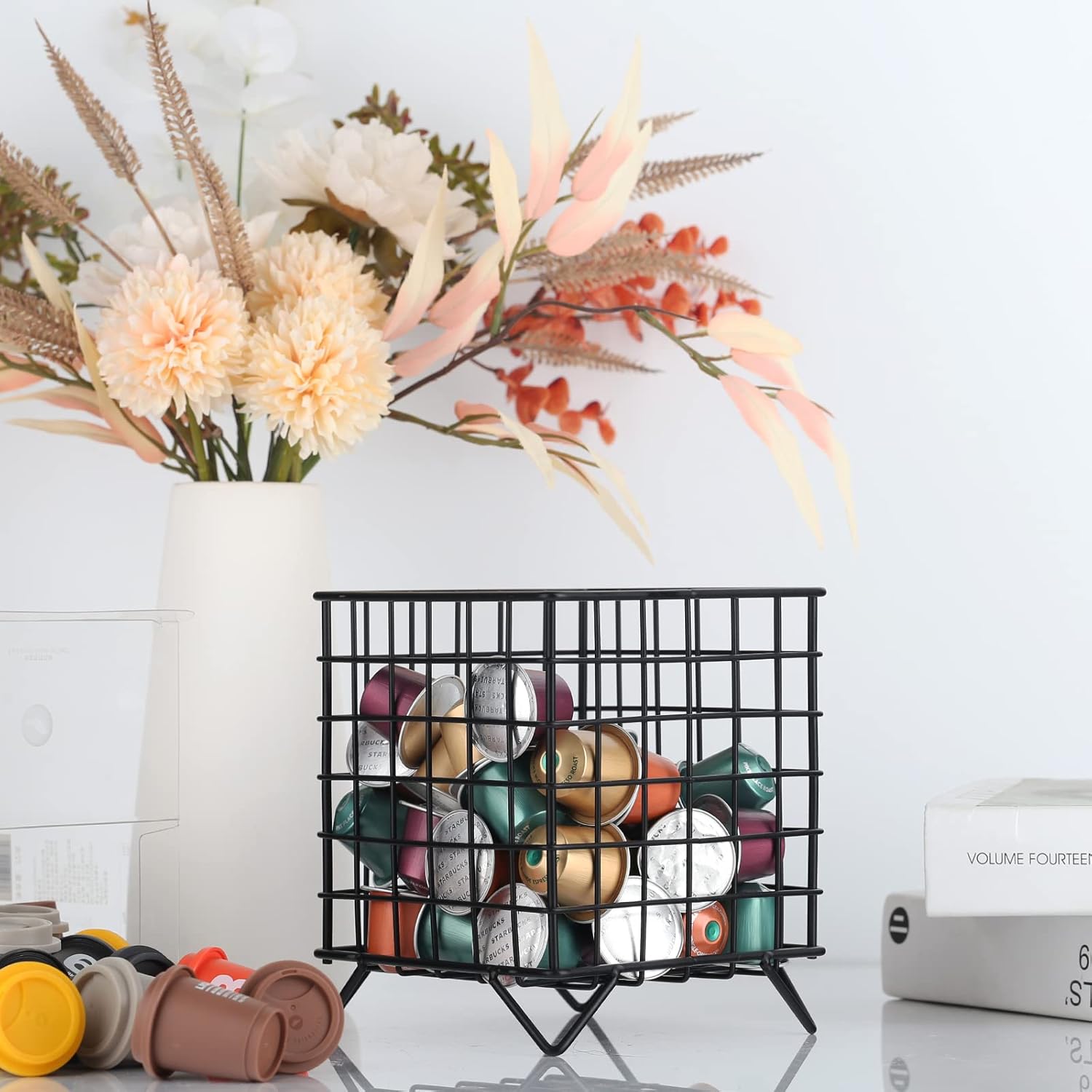 - Keep Your Pods Handy - The wide opening of the coffee pod holder is at a convenient angle for easy access. Just reach in the coffee capsule holder and grab a pod to start your coffee time. The hollow design makes it easy to know when it's time to refill it.