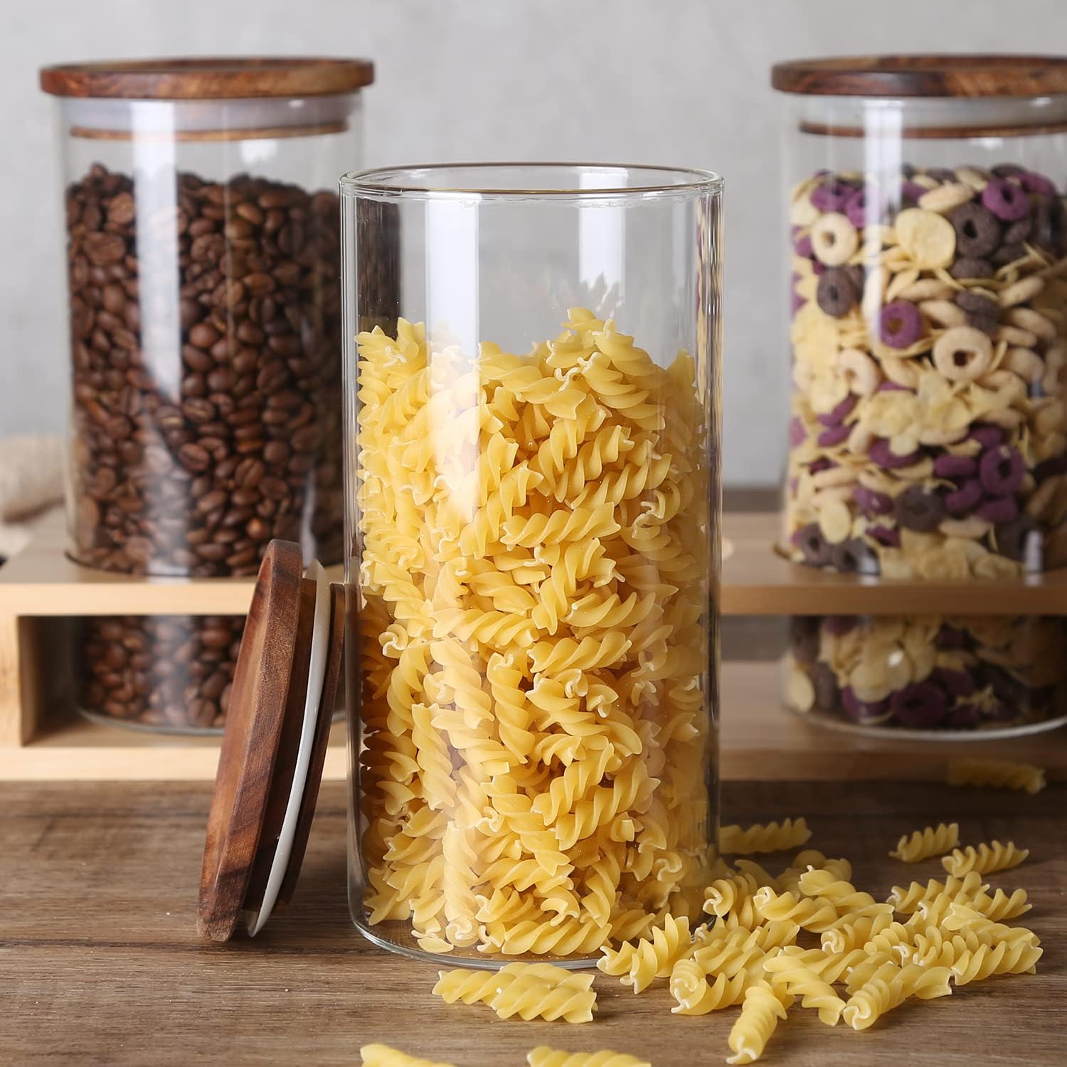 KKC HOME ACCENTS Sealed Glass Containers with Airtight Wood Lids and Scoops for Kitchen Counter,Sealed Jars for Flour,Brown Sugar,Loose Leaf Tea,Coffee Bean or Ground Coffee,39 Fluid-oz