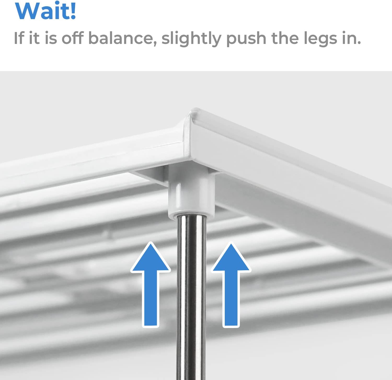 - Easy to Assemble: Made of sturdy durable metal Construction and super easy assembly without tools! Package includes 2 white plastic plates, 8 pieces of non slip feet & 8 metal poles. 100% Made in Korea.