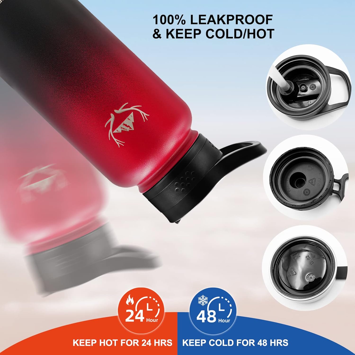 - 【Triple-Layer Vacuum Insulation】 – This insulated water bottle is engineered with triple-wall, vacuum-sealed insulation and made from premium 18/8 food-grade stainless steel. This advanced design locks in temperature, keeping drinks ice-cold for up to 48 hours or steaming hot for up to 24 hours. The no-sweat exterior prevents condensation and protects your hands from heat or frost, making it reliable for outdoor sports, travel, camping, and daily hydration