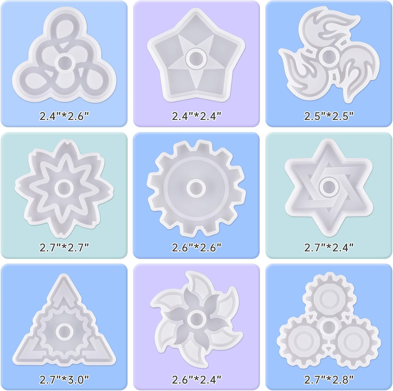 - ✅【DIY Fidget Spinner Mold Kit】Includes 9x fidget spinner resin casting molds in assorted designs (Dia.: 2.6”, Height: 0.3”), 10x stainless steel bearings (Dia.: 0.5, H: 0.16”), and 10x black plastic bearing cap sets (Dia.: 0.9”). Explore your creativity with our DIY fidget spinner casting mold kit to create unique and cool fidget spinners that spin smoothly and bring you calmness. The molds can also be used for DIY projects such as coasters, candle holders, succulent planter bases and more.
