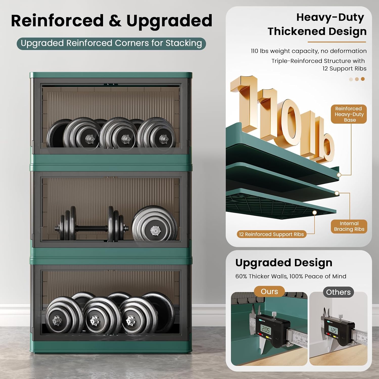 - Quick Assemble & Fold: Our storage containers can be assembled in 1 minute and folds down to 4 inches when not in use, easily tucking under beds/tight spaces—saves 80% of space. Heavy-duty PP plastic (2mm thick walls) supports 110 lbs (50 kg)/pack