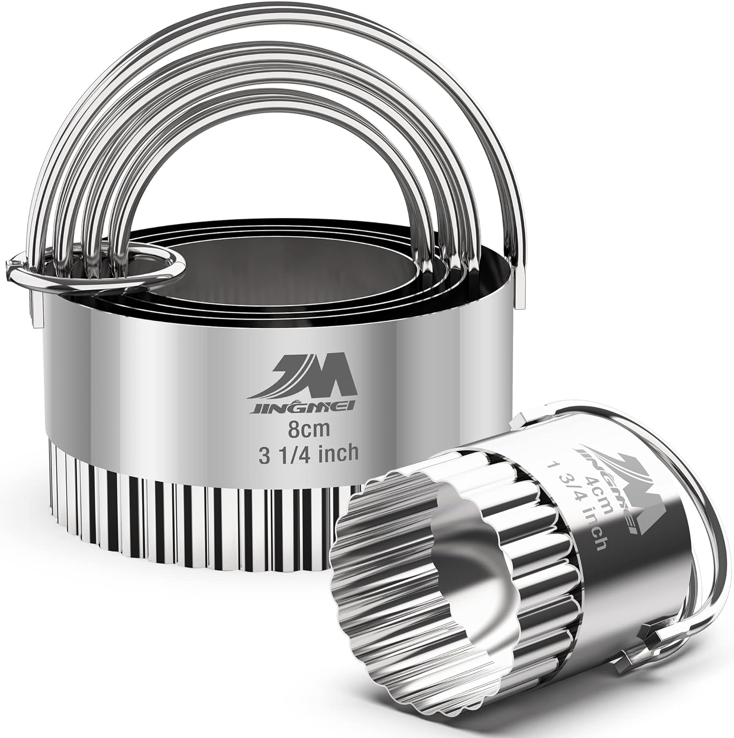 - ❀{5 pcs Ripple cookie Cutter set }The Wave Cookie cutter set of 5 different sizes , Ripple Biscuit cutter set/Fluted edge cake cutter sizes: Dia. 1 3/4inch(4cm), 2inch(5cm), 2 1/4inch(6cm), 2 3/4inch(7cm),3 1/4inch(8cm). Height: 1 3/4 inch (5 cm). Meet your different needs.
