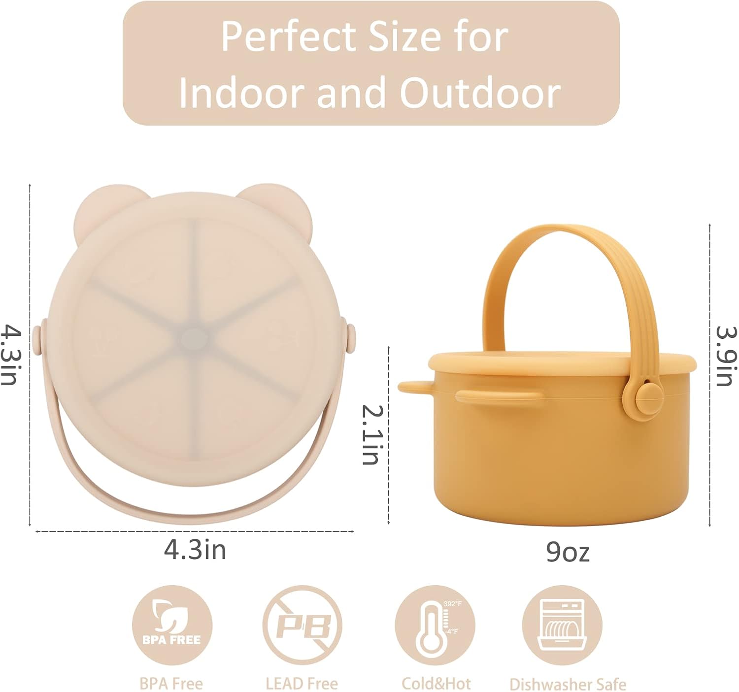 - 👶A wonderful Present: The silicone snack cups are not only great at home, but it also fits easily into your bag - you will get plenty of use from it as it can easily grow with your child through toddlerhood and pre-school age. Additionally, it makes an excellent gift for baby showers and new parents.