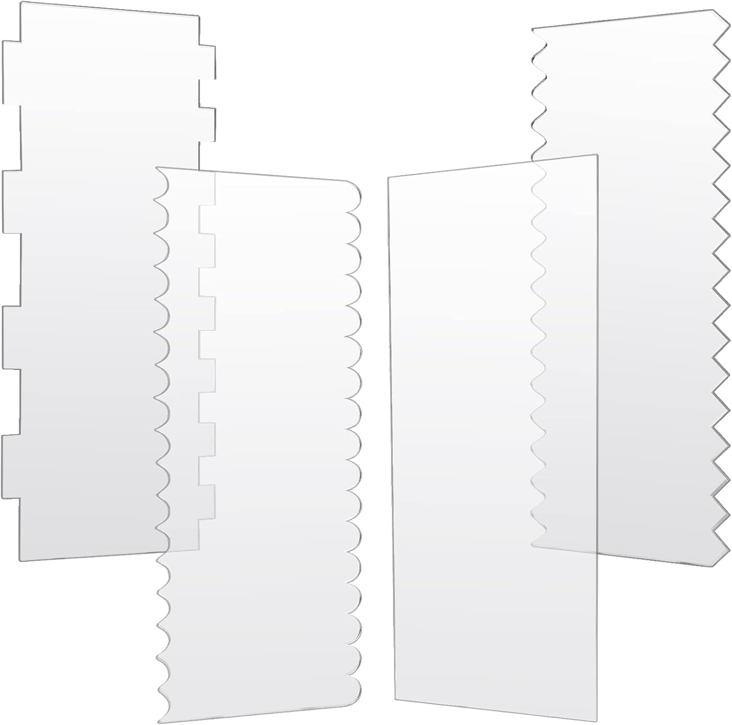 JOERSH 4pcs Acrylic Cake Scrapers Clear Combs Icing Frosting Buttercream Edge Smoother for Mousse Butter Cream Decoration