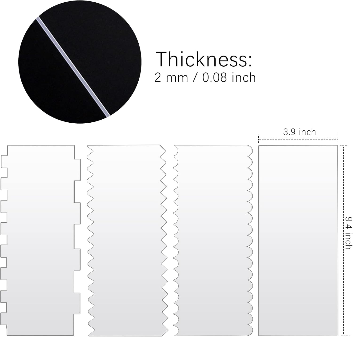 - Premium Material: These cake scrapers are made of clear acrylic, BPA free and odorless, safe to make cake in daily, not easy to break or deform