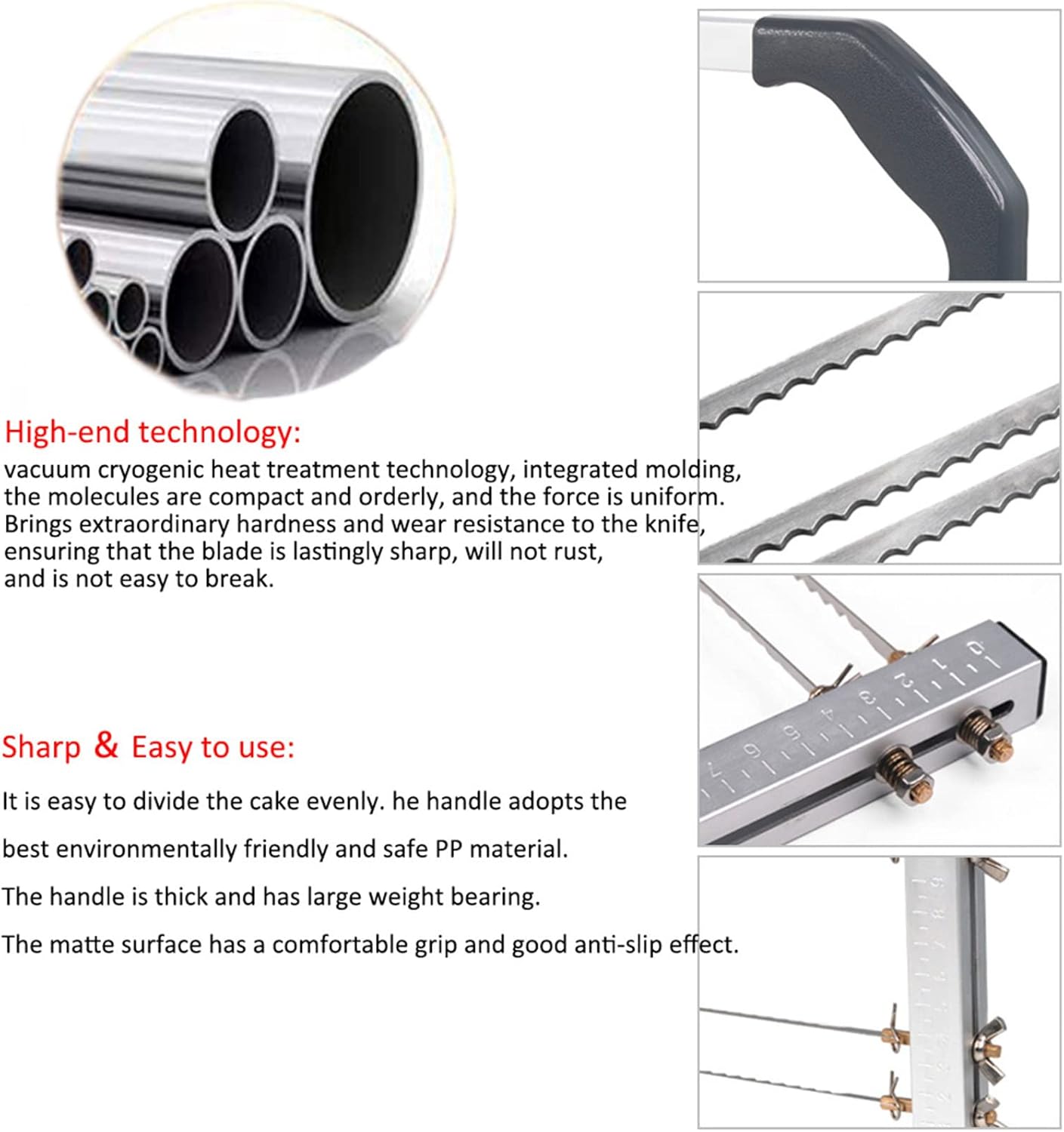 - 【Sharp & Easy to Use】 It is easy to divide the cake evenly. he handle adopts the best environmentally friendly and safe PP material. The handle is thick and has large weight bearing. The matte surface has a comfortable grip and good anti-slip effect.
