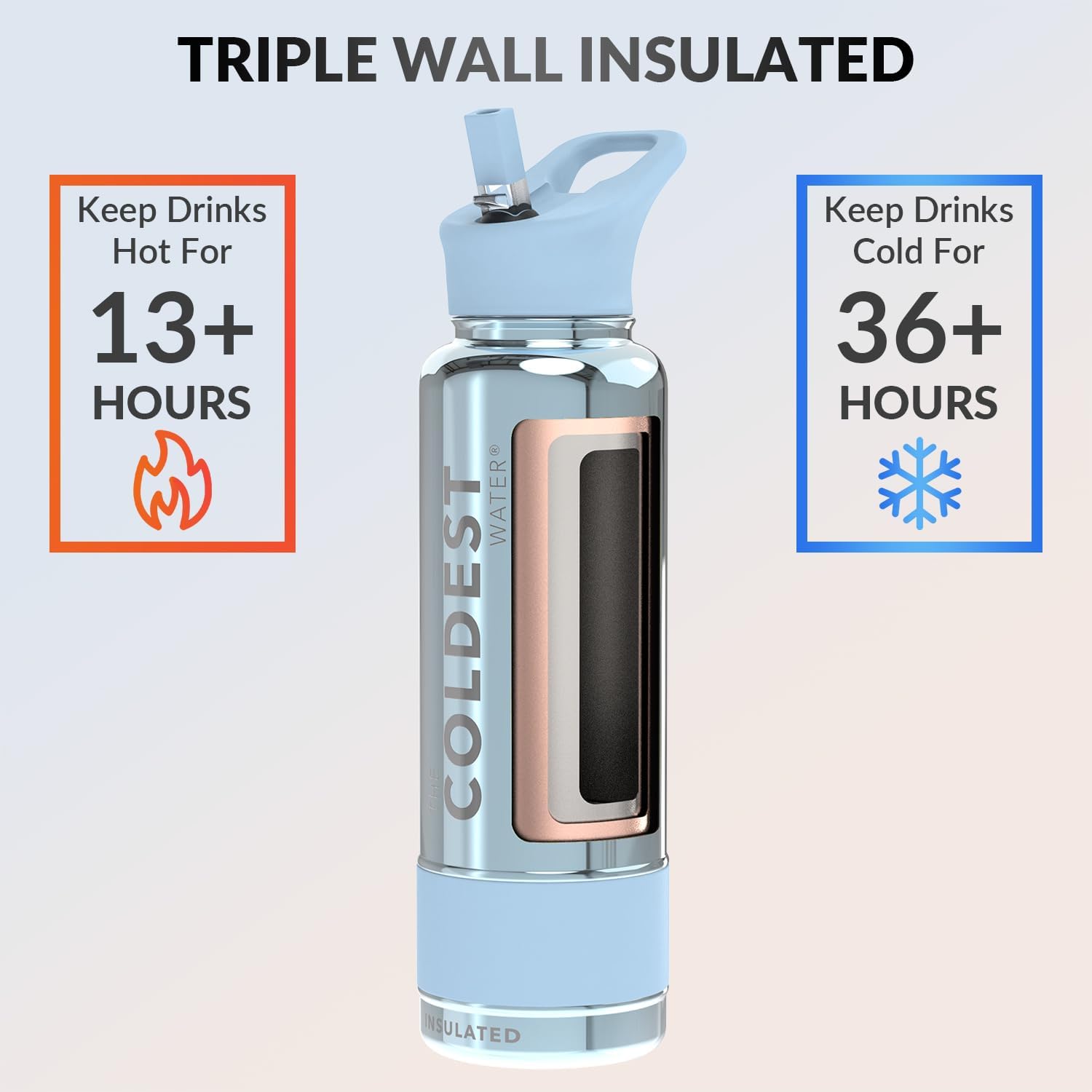 - 𝐀𝐃𝐕𝐀𝐍𝐂𝐄𝐃 𝐈𝐍𝐒𝐔𝐋𝐀𝐓𝐈𝐎𝐍 𝐓𝐄𝐂𝐇𝐍𝐎𝐋𝐎𝐆𝐘: Coldest reusable water bottles are your solution to tepid sips. With the world's first fully insulated straw lid, this bottle keeps your drink cold for 36+ hours and hot for 13+ hours, ensuring your drink stays at the perfect temperature throughout the day. Cold-tested against 50+ leading brands, its superior performance guarantees an unmatched experience. Upgrade now to the Coldest Water Bottle and bid farewell to temperature woes.