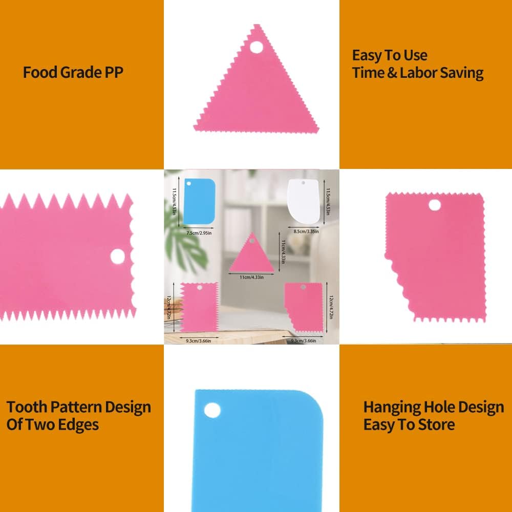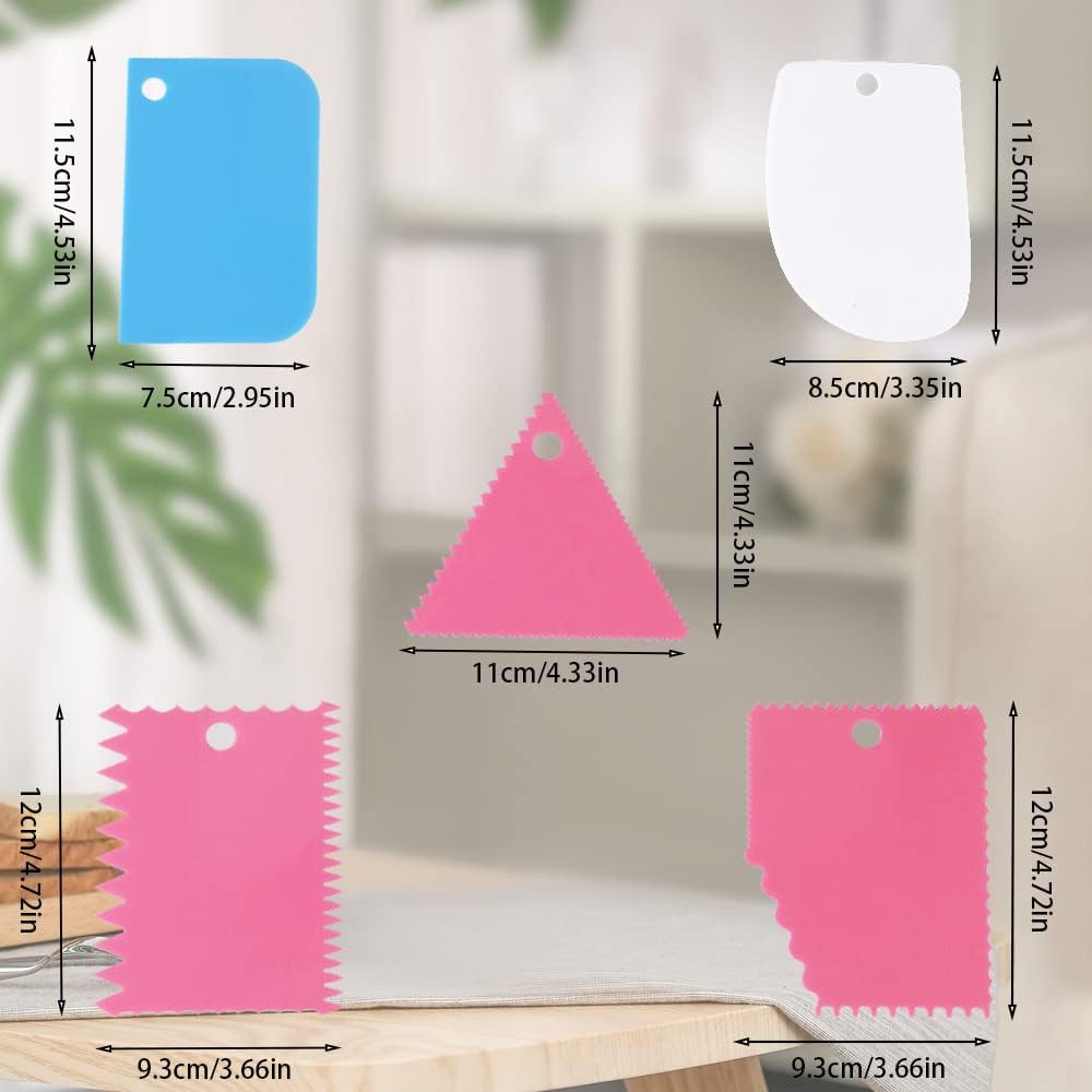 - 【Package include】:One set of 5 cake decorating smoother dough scraper. Color: Multicolor(1pcs-white+1pcs-blue+3pcs-pink)