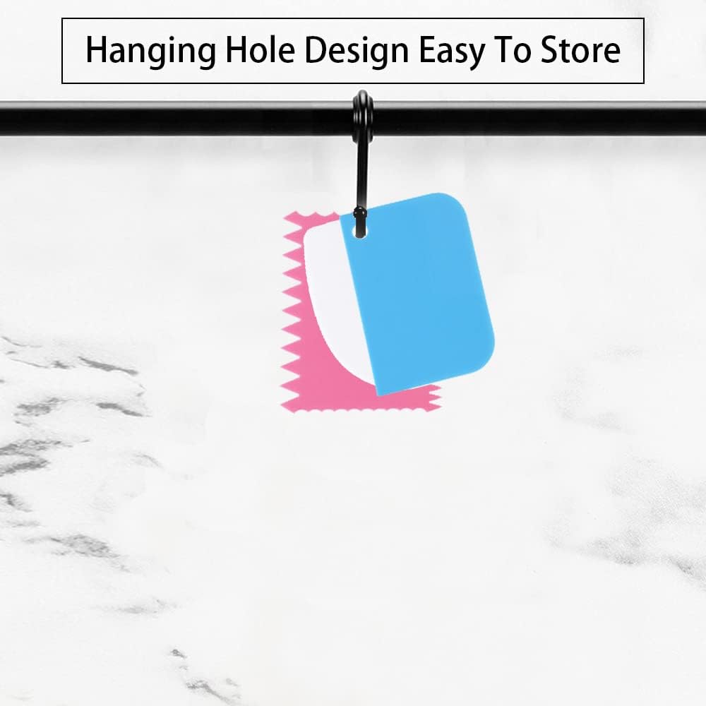 - 【Unique Design】:Have different shape,Different serrated tooth and round shaped edges,ranging from small,medium,and large.Allow you to create edges with different patterns and style on the side or top of the cakes.Hanging hole design,Convenient storage