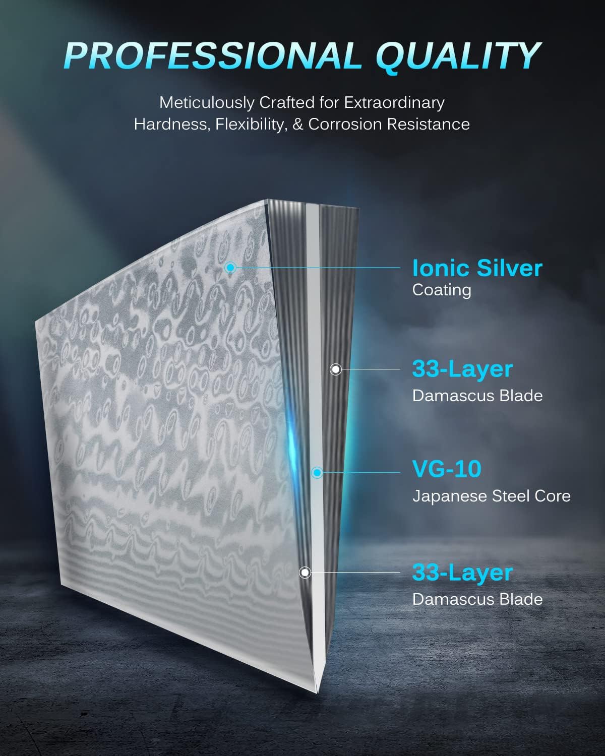 - INNOVATIVE PROTECTION: Our blade boasts a protective silver ion coating to prevent growth of unwanted contaminants for extra culinary safety; the provided sheath and case allow you to preserve your knife with care
