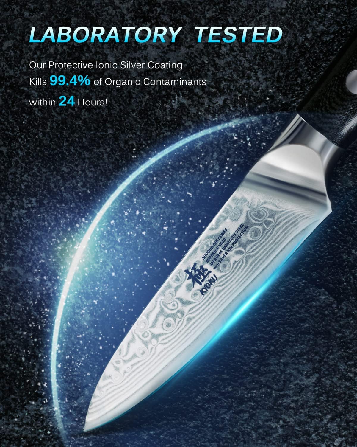 - 3-1/2" PARING KNIFE: This fruit knife is part of Kyoku's brand new Gin series, manufactured with modern technology and traditional craftsmanship to offer unrivalled performance for home chefs and culinary professionals alike