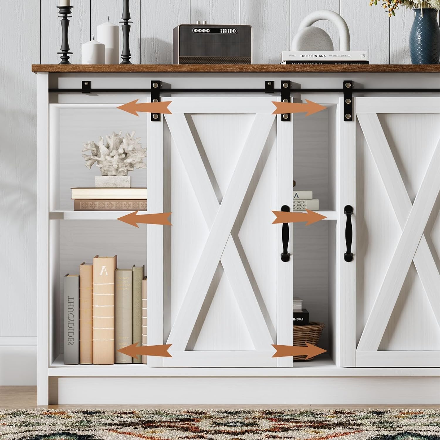 - Special Feature : Adjustable Shelf, Sliding Barn Door