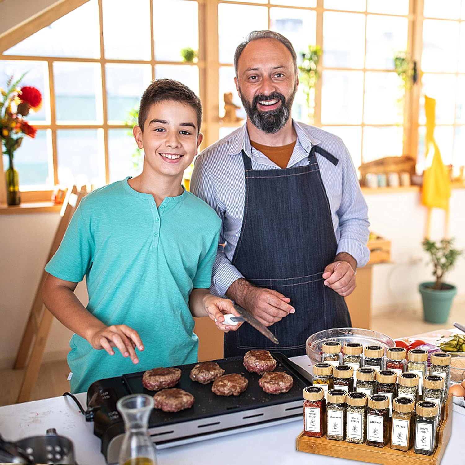 - Airtight Bamboo Lid Spice Jars: The glass seasoning jars are made leak-proof in the lid, we use the natural and safe bamboo lid, and deepen the depth of the lid with the usage of thread rotation, which is tightly integrated with the glass spice jars so that the spice jars with bamboo lids have - perfect sealing to keep the spices fresh. So when you are not using the spice jar, just tighten the bamboo lid to keep the seasoning fresh and dry for a long time.