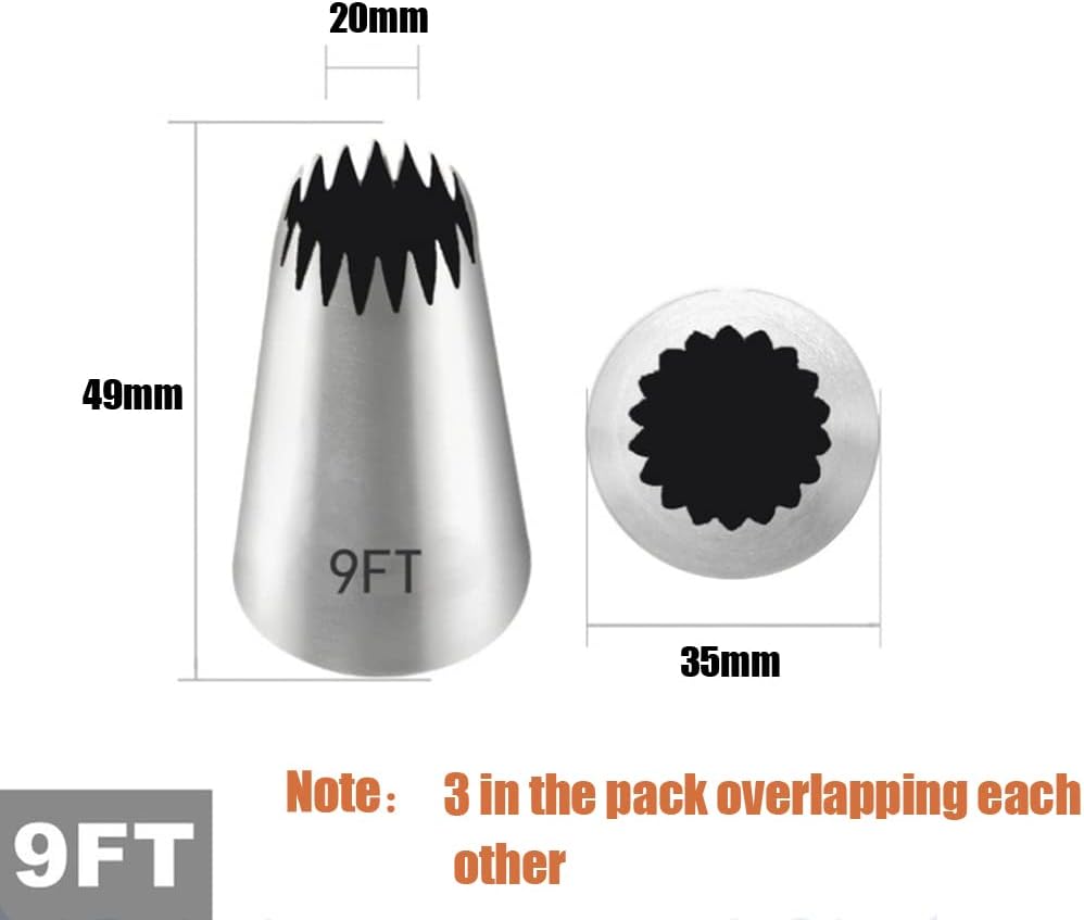 Churro Piping Tip,Piping Tips for Eclair,Open Star Pastry Tip Large for Piping,9FT Icing Tips,3 Pcs