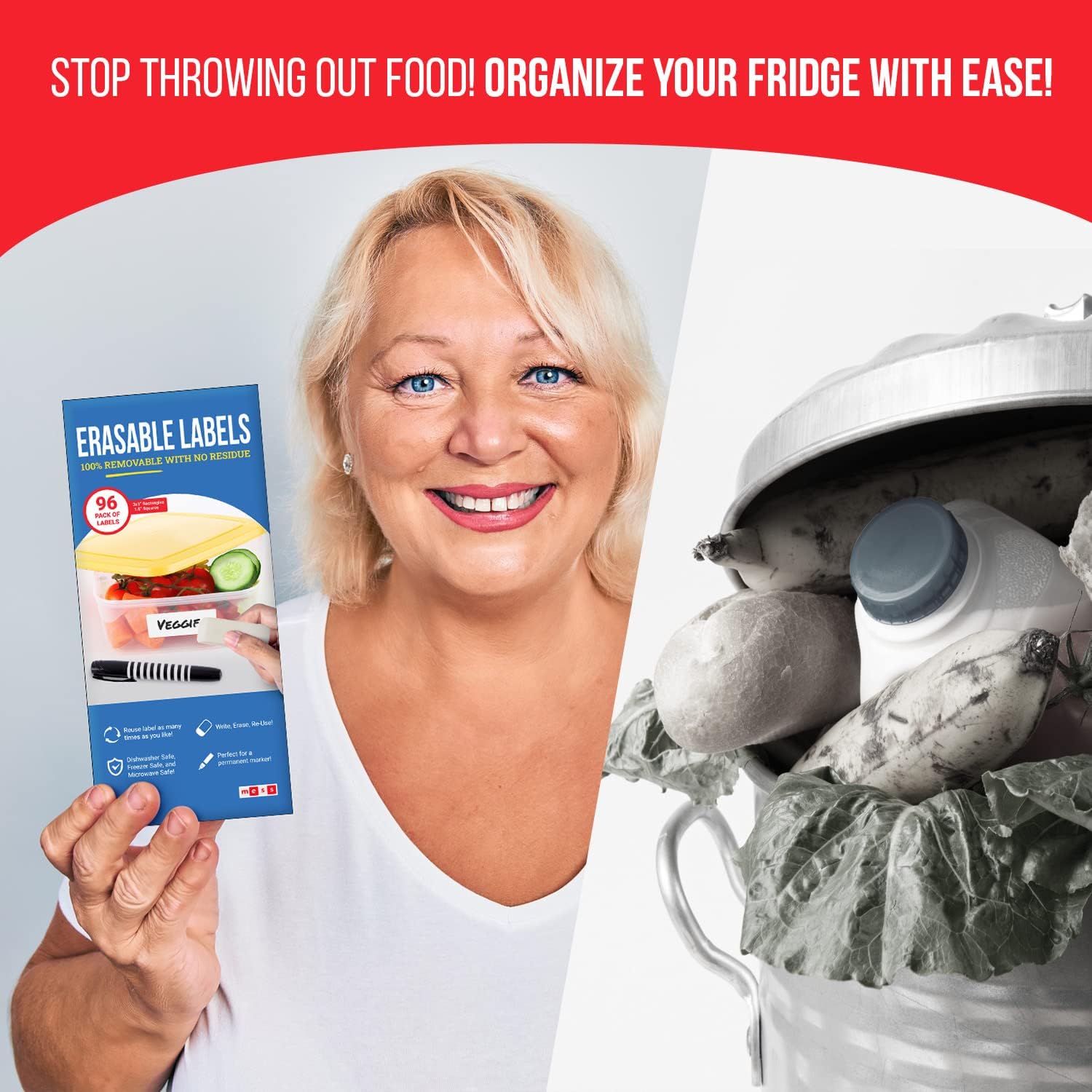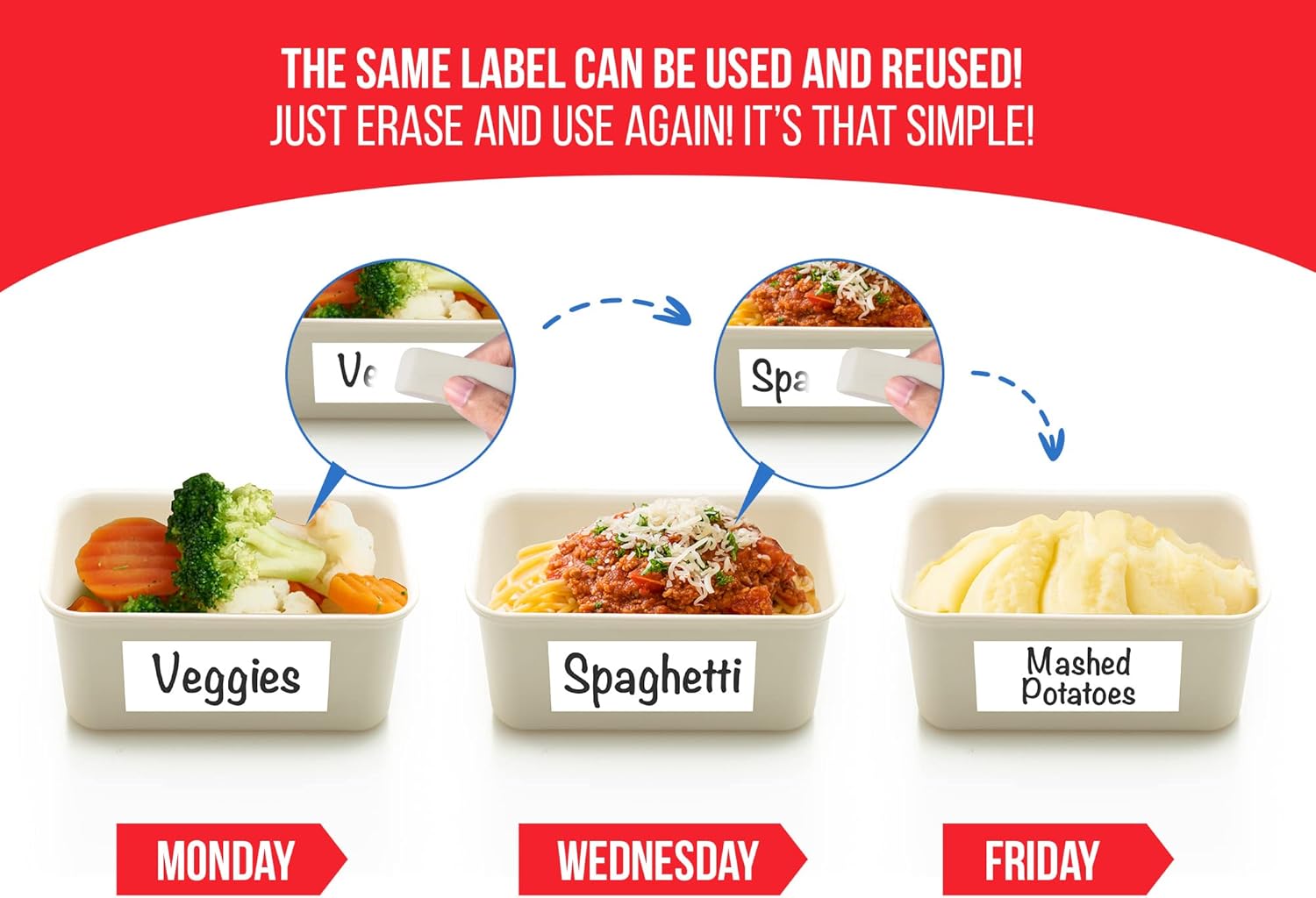 - Multipurpose – Your erasable and removable blank stickers work great for labeling meal prep containers, canning labels, mason jar labels, or organization in the fridge. Way better than freezer tape! Eraser and Marker not included. Help the Environment – Accurate labeling helps keep old fridge food, drinks, and containers out of the landfill. These kitchen labels for containers also keep harmful cleaners out of the drain!