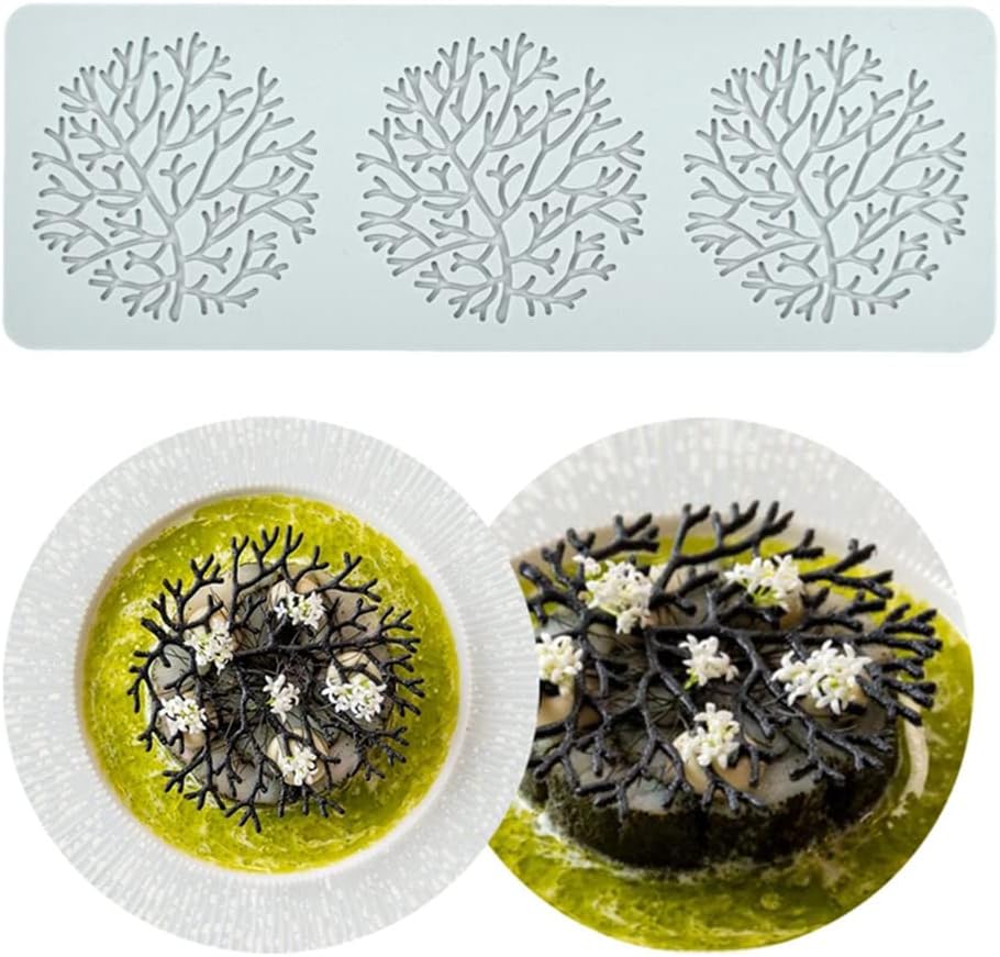 Silicone Lace Mold, Wedding Cake Lace Mat, Coral Cake Decorating Mold Flower Fondant Impression Mats for Edible Lace Fondant Mold, Sugar-Lace Cupcake Mat Tools (B_10.6x5.4x0.12inch)