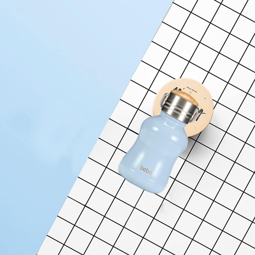 YOHKOH Mini Vacuum Insulated Water Bottle With Bamboo Lid - Stainless Steel Thermos Water Bottle for Women Girls Kids, Metal Sports Hot and Cold Water Bottle Leak-Proof BPA-Free (6.4oz,Blue)