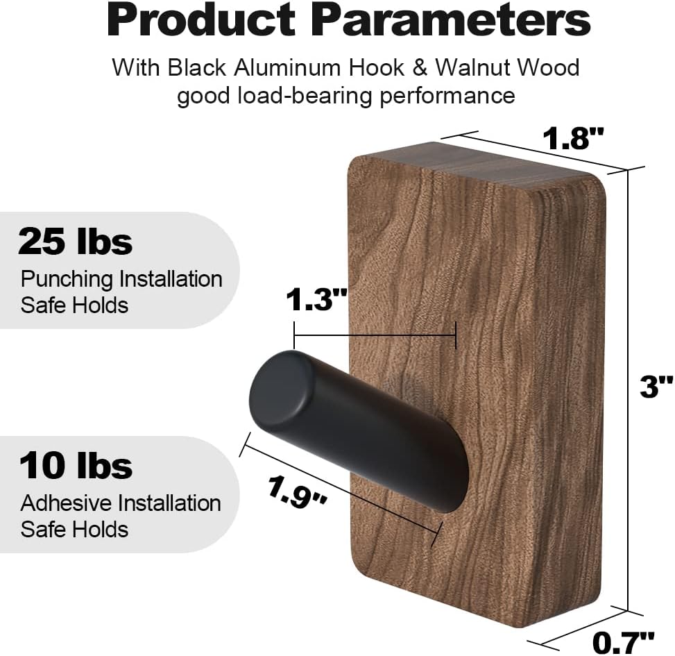 - Material and single hardware: Walnut wall hook, sturdy material, unique and handcrafted coat hooks made of walnut wood. 4 pcs wall hook which can use for individual needs