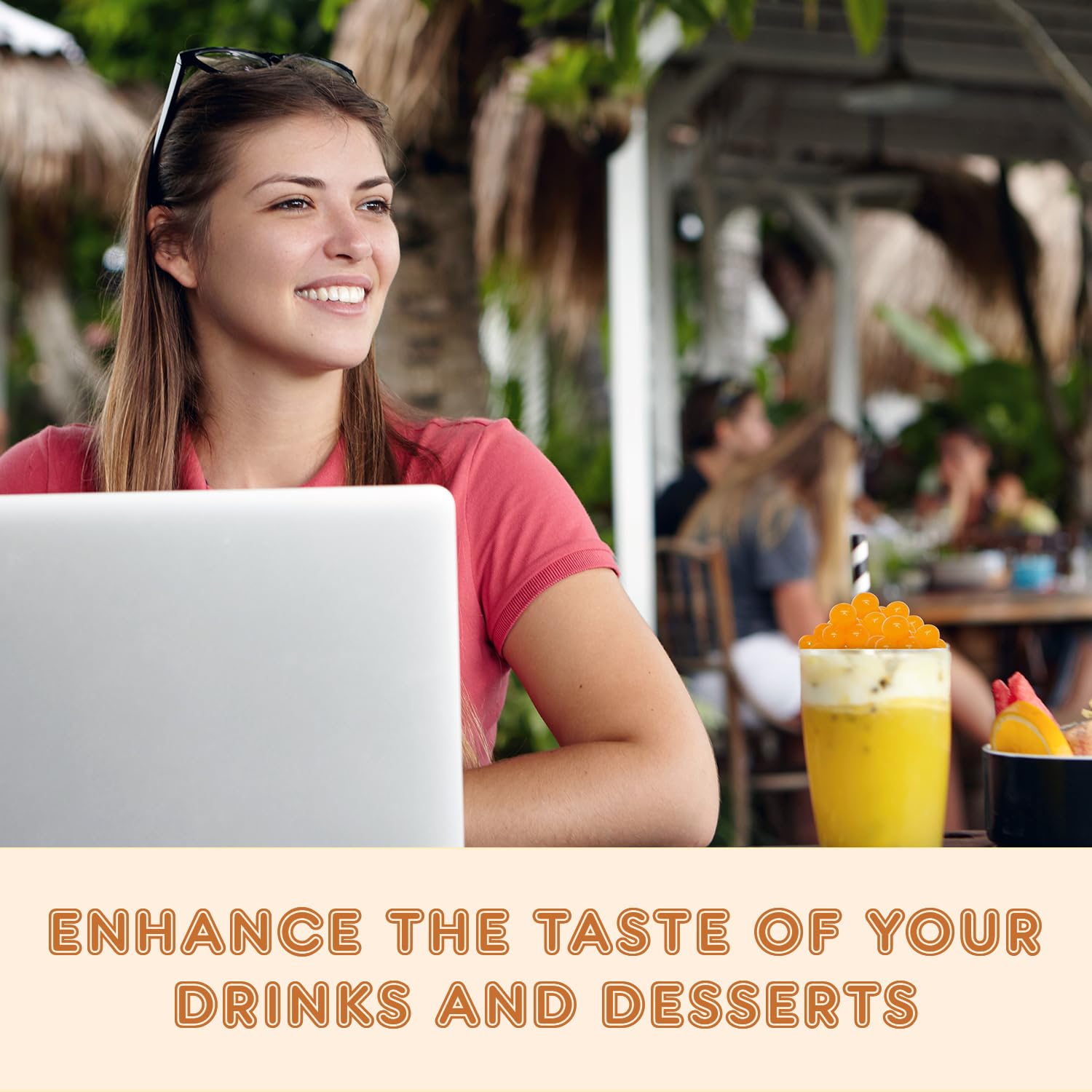- 𝐄𝐧𝐫𝐢𝐜𝐡𝐞𝐝 𝐖𝐢𝐭𝐡 𝐉𝐮𝐢𝐜𝐲 𝐆𝐨𝐨𝐝𝐧𝐞𝐬𝐬: The fruit boba pearls are filled with natural and organic Mango goodness. You get a juicy, mouthful taste of Mango with every bite and slurp of your favorite beverages.