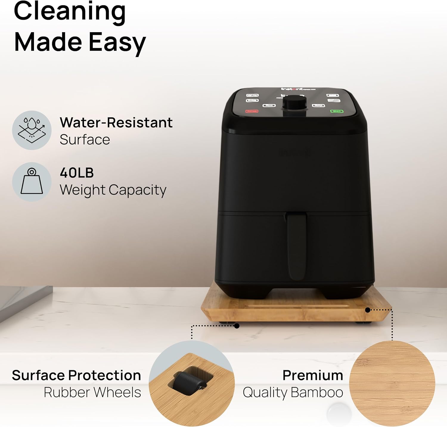 - 𝐃𝐄𝐒𝐈𝐆𝐍𝐄𝐃 𝐅𝐎𝐑 𝐘𝐎𝐔: With environmentally friendly bamboo, an elegant look to complement any kitchen, and top-quality quiet rubber wheels that let you quickly and quietly slide your appliances, this will quickly become your preferred kitchen accessory. If anything goes wrong, we’re here to make it right. Click Buy Now, and enjoy complete kitchen freedom today!