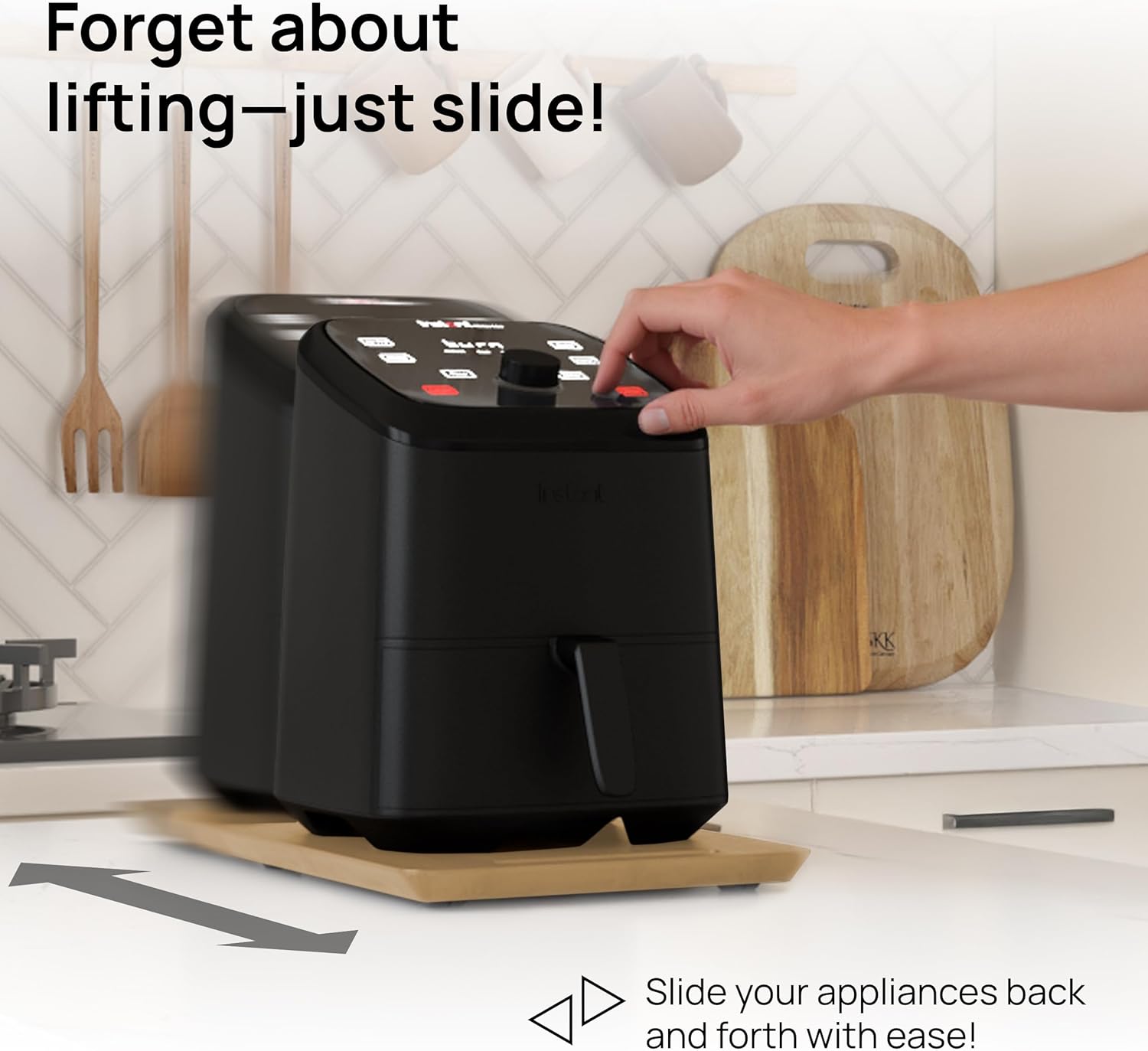 - 𝐄𝐋𝐄𝐆𝐀𝐍𝐓𝐋𝐘 𝐎𝐑𝐆𝐀𝐍𝐈𝐙𝐄: With the Ibyx appliance slider, you can reorganize your kitchen accessories in style without scratching your countertop or kitchen surfaces. Whether you want to easily access your coffeemaker air fryer from under the cabinet, or you need more counter space to prepare a large meal, Ibyx lets you quickly and easily move appliances