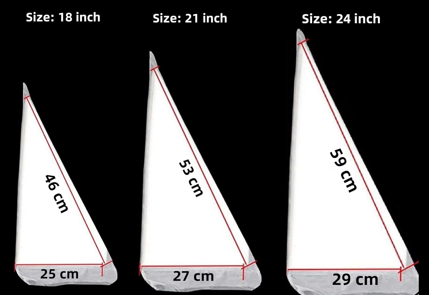 - CAKE DECORATING BAGS DISPOSABLE: Just toss it when done using, disposable icing bags ensure sterility and make cleanup quick and easy. 24 inch capacity big plastic piping bags are a versatile decorating tool for professional and home bakers alike.