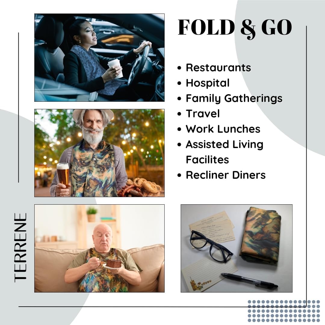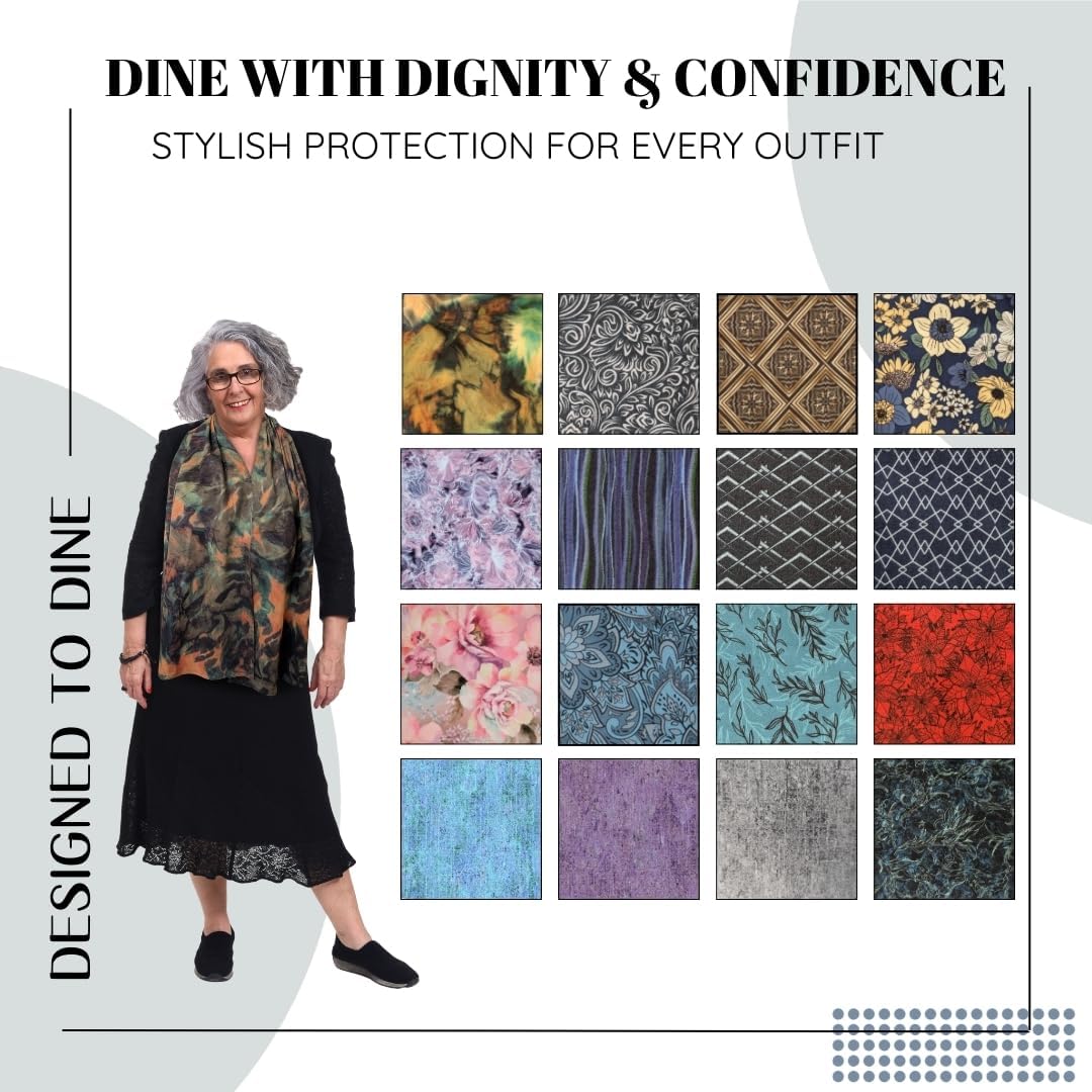• 🎁 STAY DIGNIFIED & FASHIONABLE with our senior bibs scarves specifically designed to uphold the dignity of senior citizens. Wearing a “grown-up bib” is depressing and humiliating for many of our loved ones. Designed to Dine adult bib scarves allow our seniors to maintain a stylish and dignified look while dining with friends and family. Adaptive clothing to protect both your shirt and your dignity.