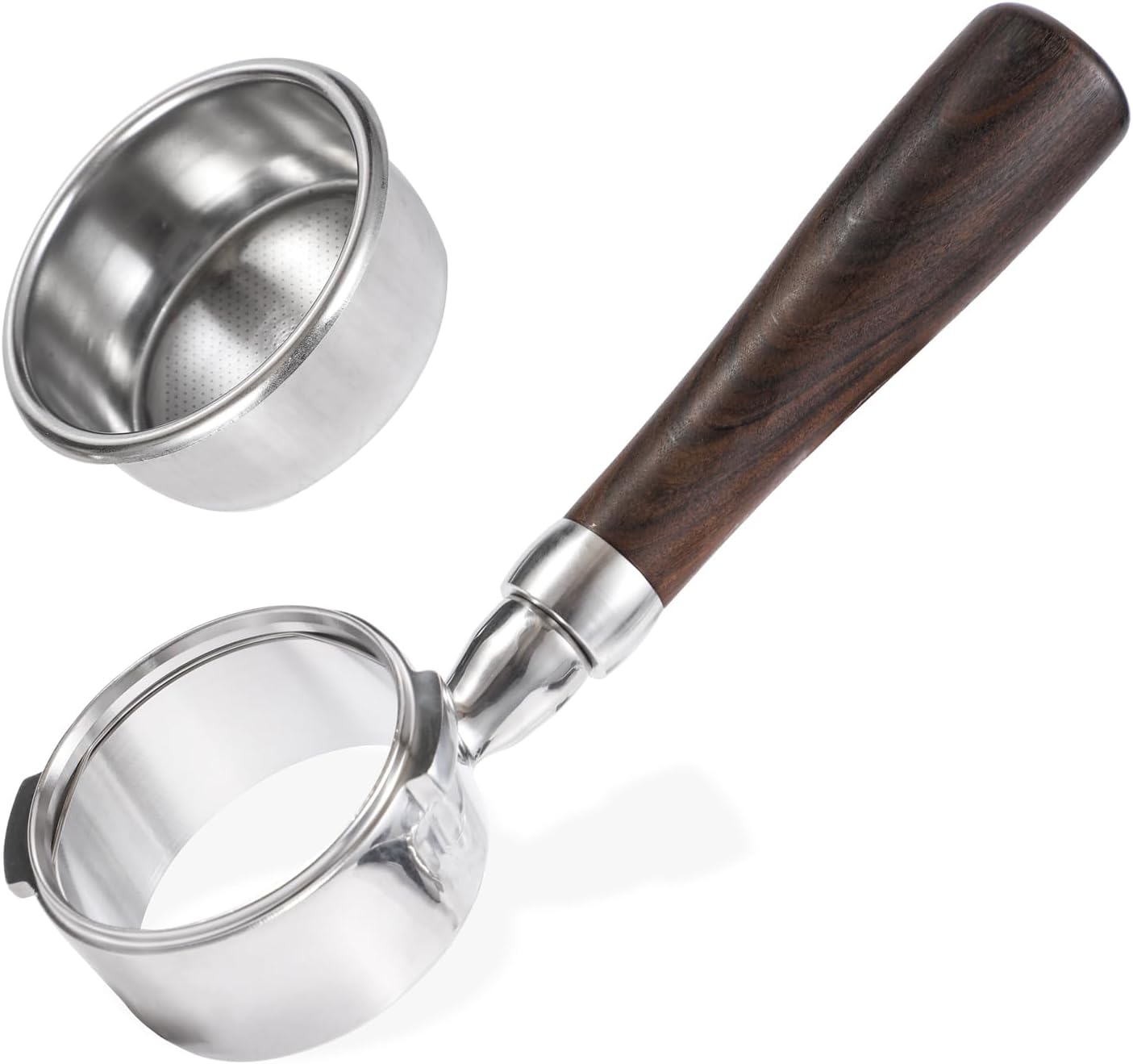 58mm Bottomless Portafilter with Double Shot Filter Basket & Wood Handle for Gaggia Classic, Espresso Pure, Color, Dose, Evolution, Baby Twin and More Semi-Automatic Espresso Machine