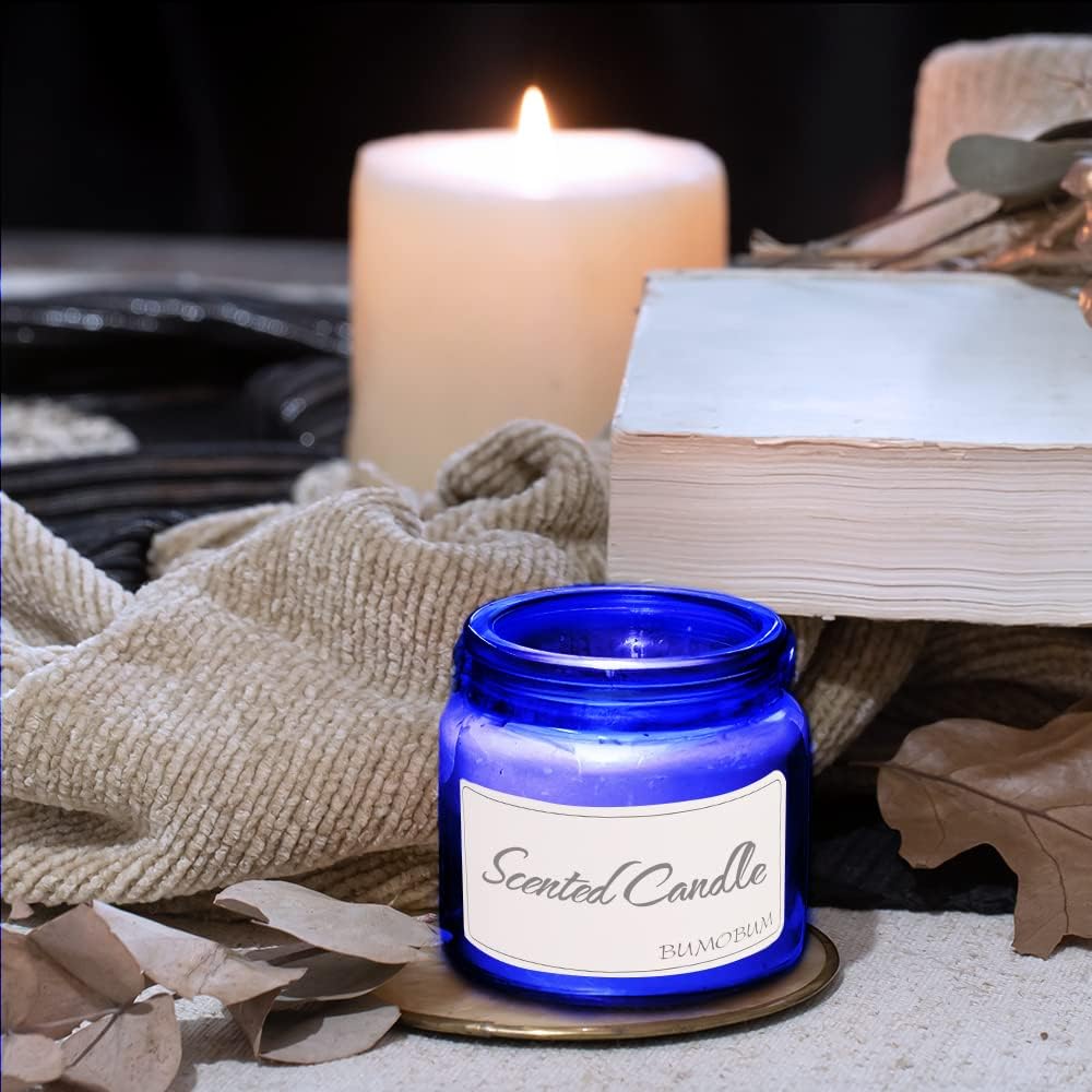 Bumobum 2 oz Glass Jars with Lids, 48 pack Blue Round Small Containers with Black Lids, Blank Labels & Inner Liners, Empty Cosmetic Containers for Sample, Powder, Cream, Lotion