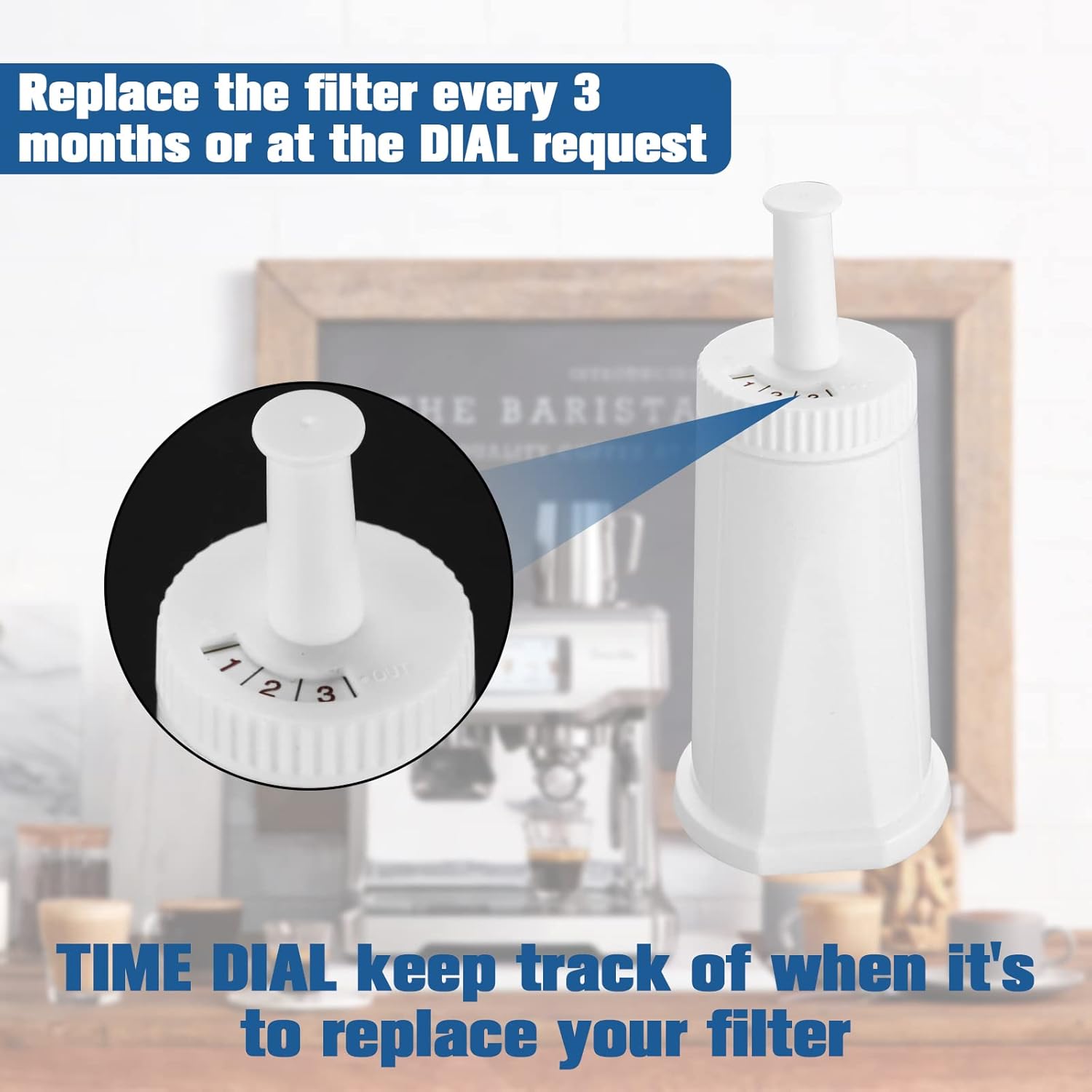 - 𝗘𝗫𝗖𝗘𝗟𝗟𝗘𝗡𝗧 𝗙𝗜𝗟𝗧𝗥𝗔𝗧𝗜𝗢𝗡 - Our water filter replacement for Breville espresso machines combines natural ion exchange resin and activated carbon to improve the taste of hot beverages by reducing scale buildup and stabilizing calcium carbonate, removing unpleasant impurities that can affect the flavor and aroma of coffee. Experience the aroma and ambiance of a coffeehouse without leaving your home
