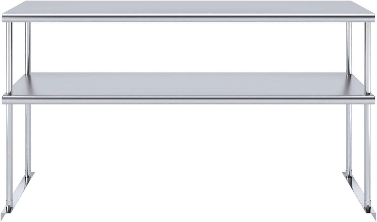 - This stainless steel double overshelves provide a stable and sanitary surface to store kitchen accessories, boxes, tools, cleaning equipment, and more. This NSF-certified table meets strict standards for public health protection and safety. The core structure of each overshelf is stainless, made of 18 Gauge galvanized steel, guaranteeing a lifetime of durability & reliability in the highest volume environments.