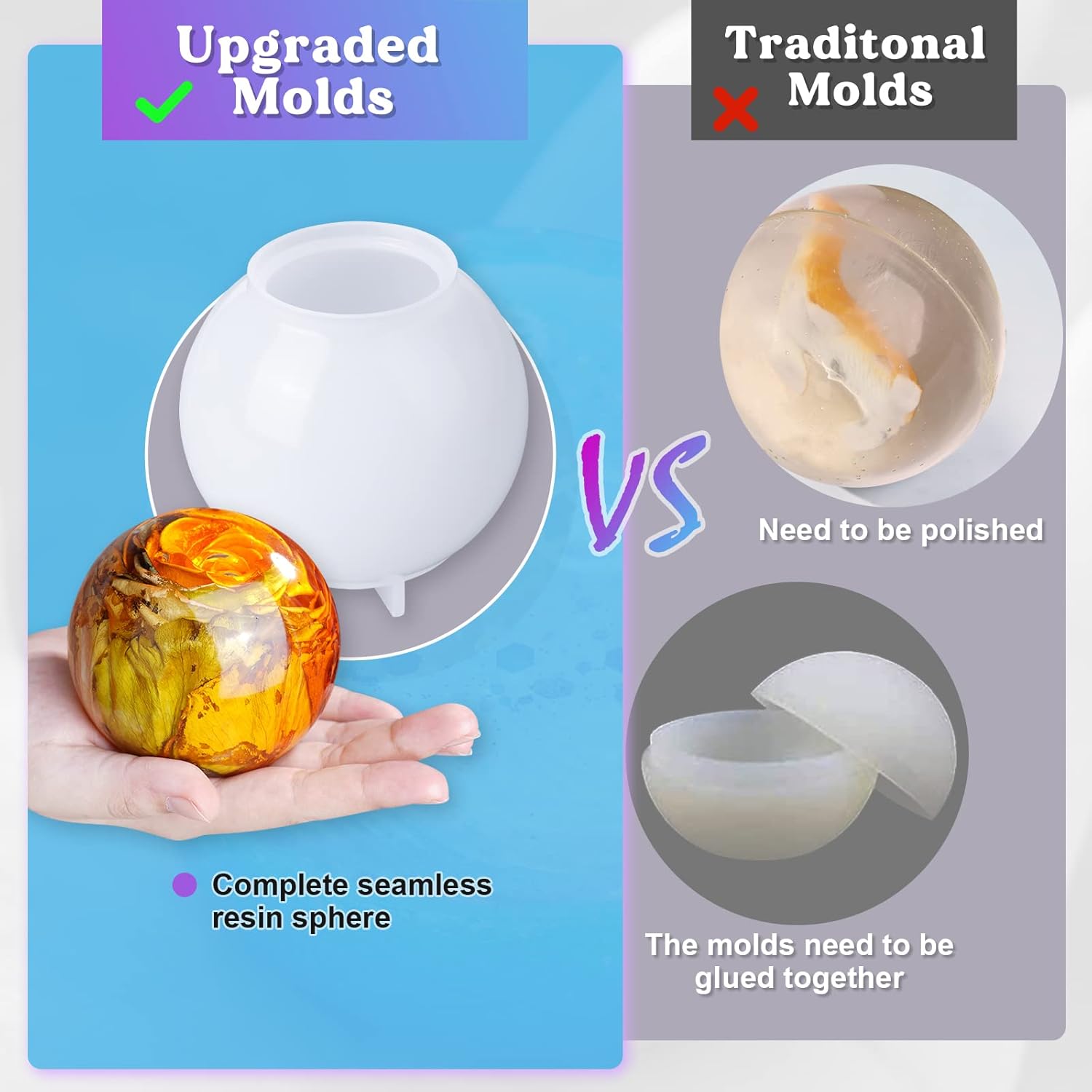 - 【Upgrade One-Piece Silicone Sphere Molds】:Compared to other 2-part resin sphere molds, LET'S RESIN upgrade one-piece sphere molds help you easily obtain a complete ball shape with no seam in the middle part; taping, sanding & polishing is no longer needed. And the base with support design is able to prevent deformation during the casting resin process.