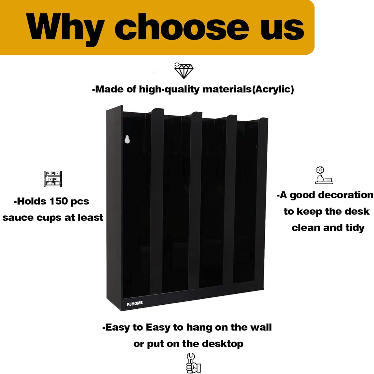 PJHOME Portion Sauce Cup Lid Organizer 4 Compartments Plastic Sauce Cup Holder for Counter Wall Mount Disposable Cup and Lid Storage Restaurant Supplies